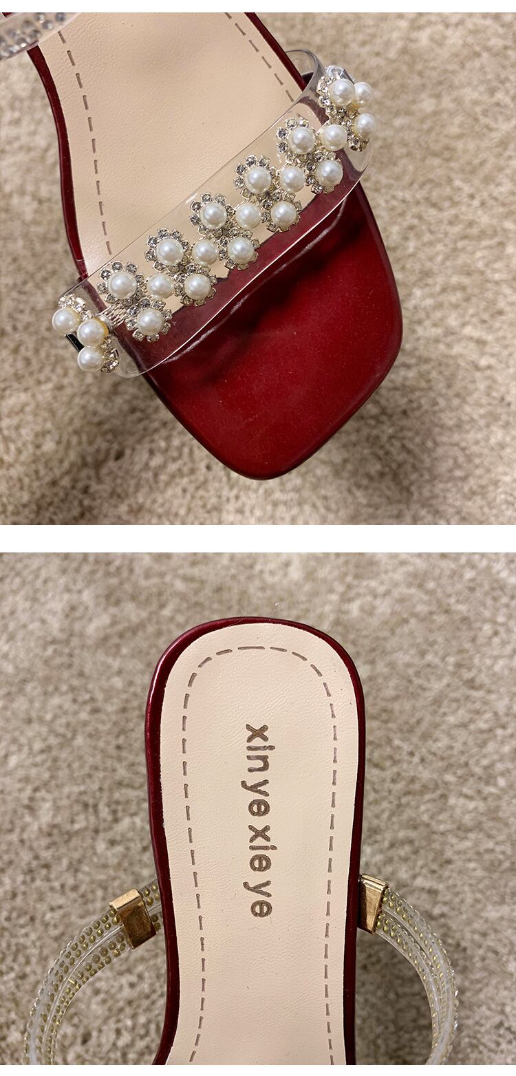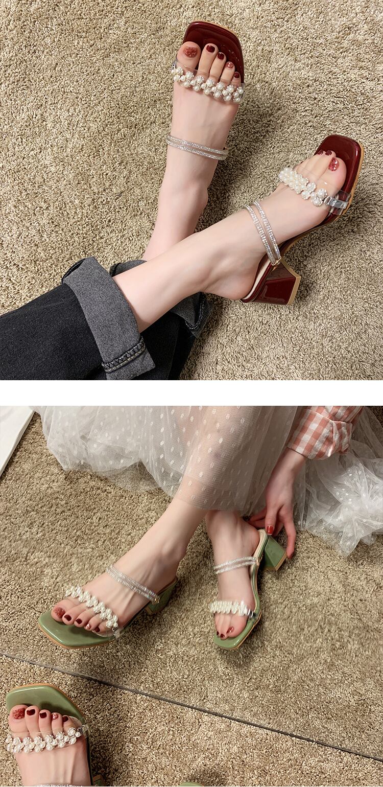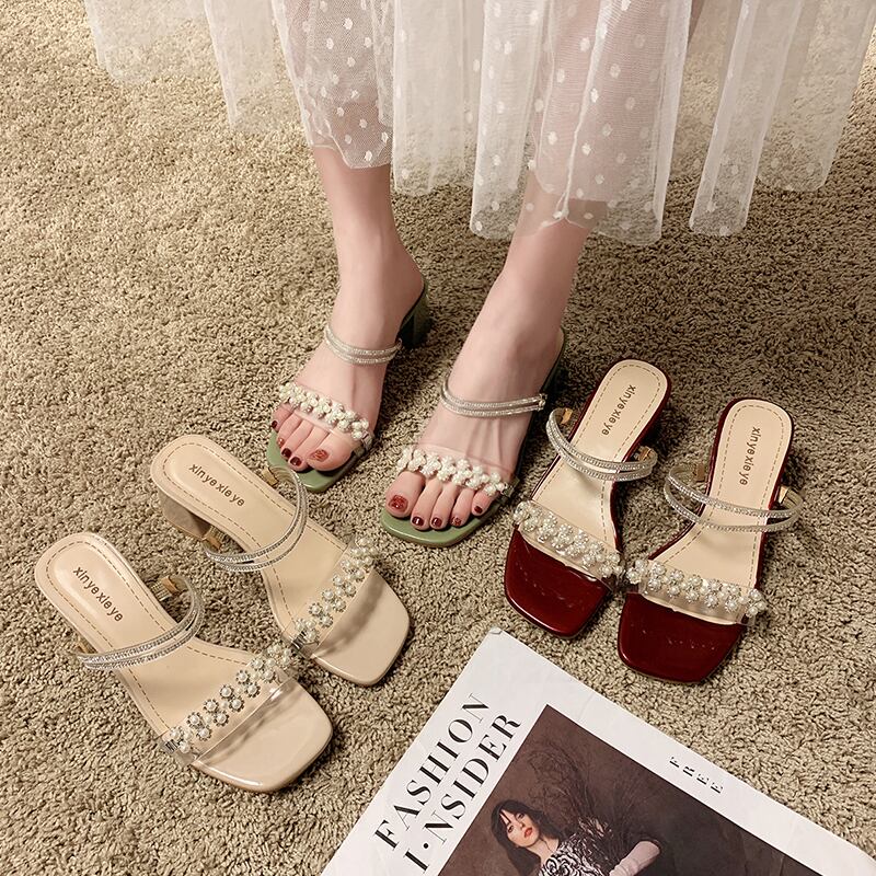 野生の潮のファッションの真珠のラインストーンチャンキーヒールのサンダル女性の妖精風2020春と夏の新バージョン 部族の婦人靴8243240