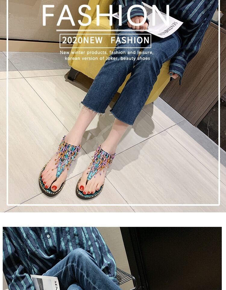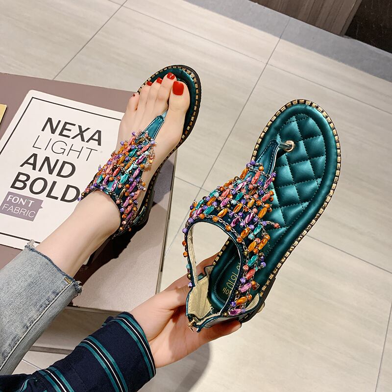 ネットレッドサンダル女性のフラットシューズ2020新しいファッションパールクリップつま先バックジッパー野生の夏の女性の靴の潮 部族の婦人靴0526699