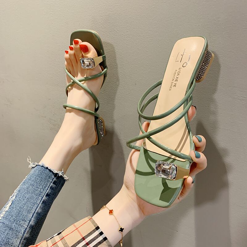 スリッパの女性は2020年春と夏の新しいバージョンのセットつま先の野生のファッションのラインストーンのフェアリーワードのドラッグ女性の厚いバージョンを着用します 部族の婦人靴8901302