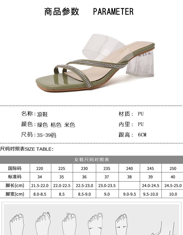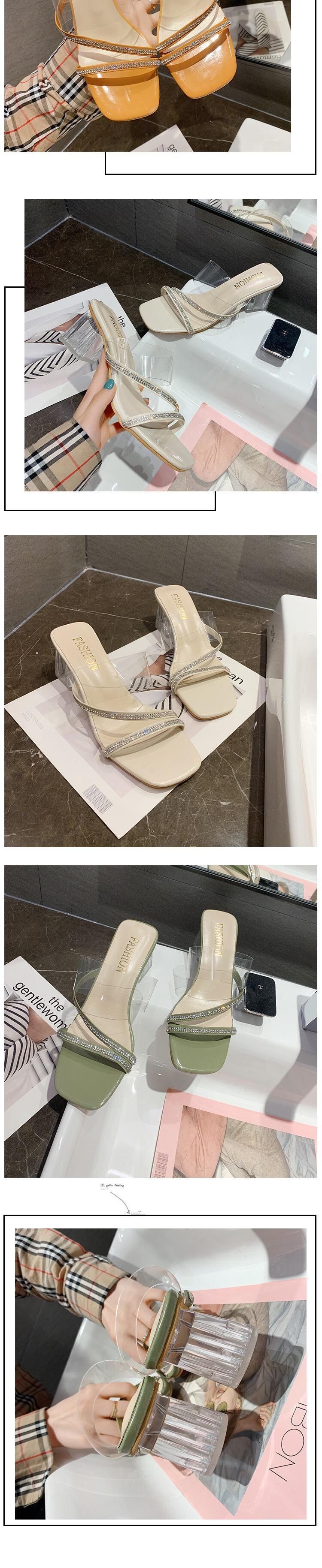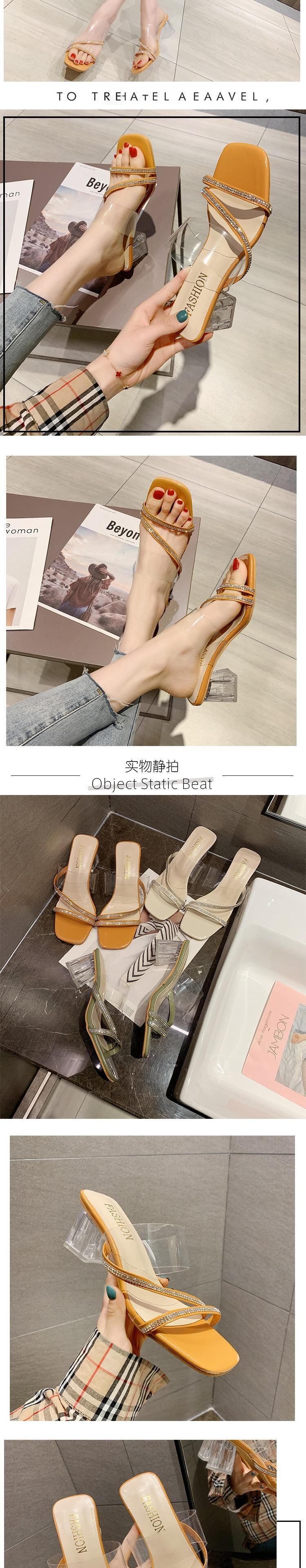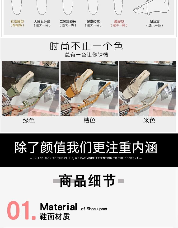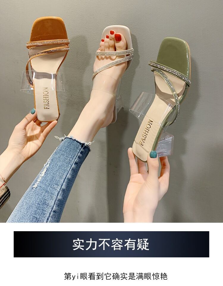 純赤のサンダルとスリッパ女性の摩耗2020年夏の新しいバージョンのラインストーン透明オープントゥ厚いヒールハイヒールワードスリッパ 部族の婦人靴1329532