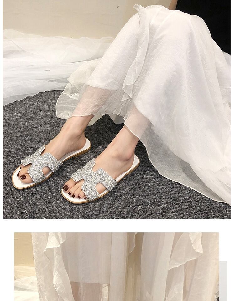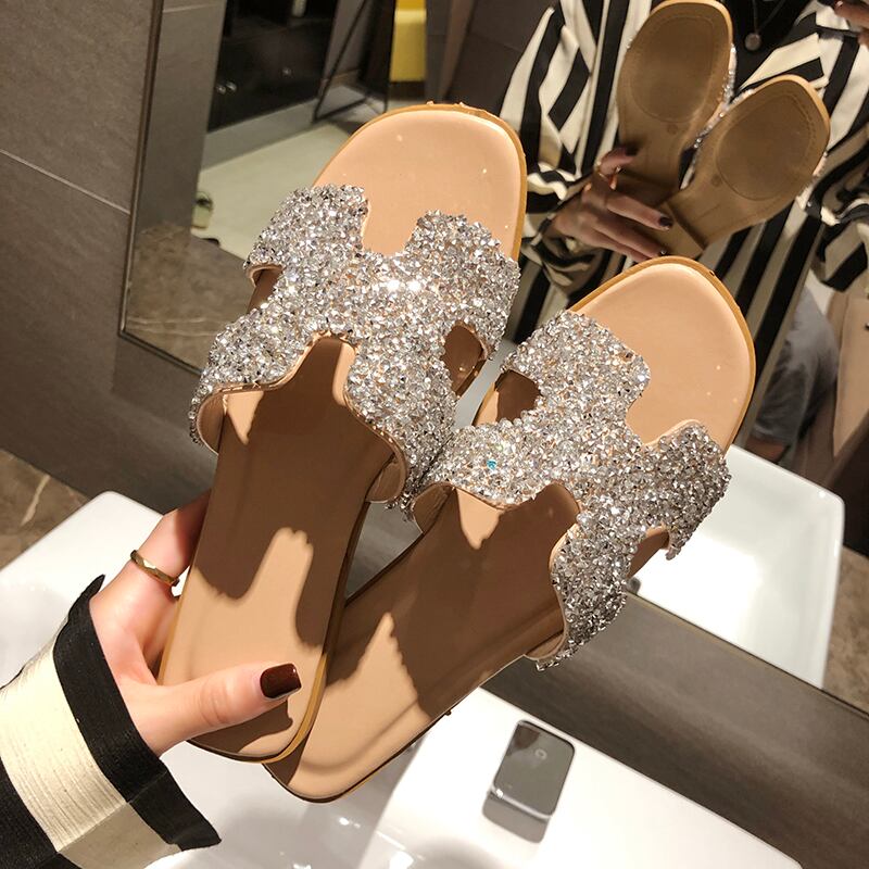2020夏の新しいファッションスリッパ女性着用ラインストーンメッシュ赤フラットボトムワードドラッグビーチサンダル女性屋外着用 部族の婦人靴6294635