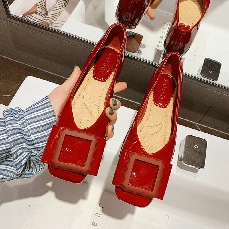 シングルシューズ女性2020春新バージョンスクエアバックル浅い口フラットスクープシューズネット赤い妖精風エンドウ豆靴女性の潮 部族の婦人靴4156967