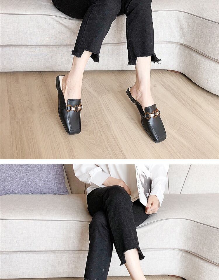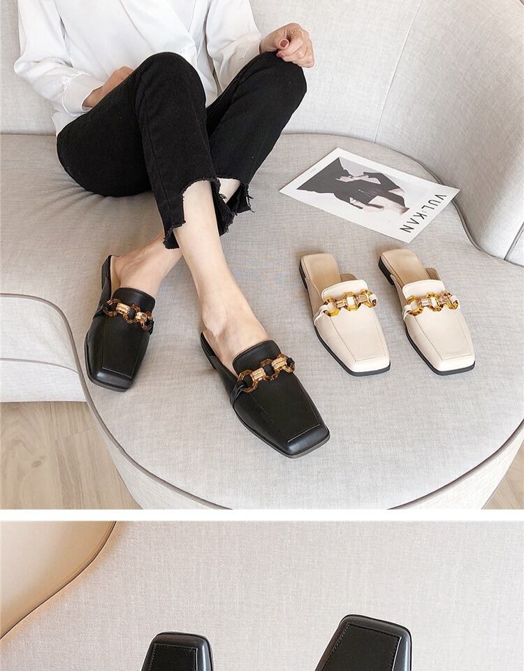 包頭ハーフスリッパ女性アウター2020春新入生英国風ワイルドスクエアヘッドフラットミュール 部族の婦人靴1796706