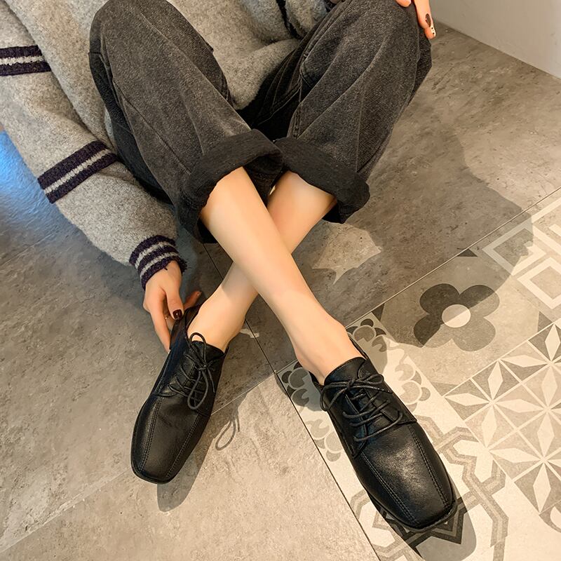 Lefuの靴の女性の2020年春モデル野生のネット小豆の靴の女性の厚いヒールの靴のレトロな2つは小さな革の靴を着用します 部族の婦人靴1815137