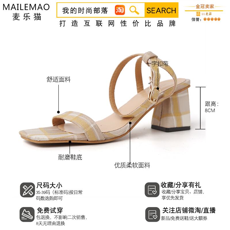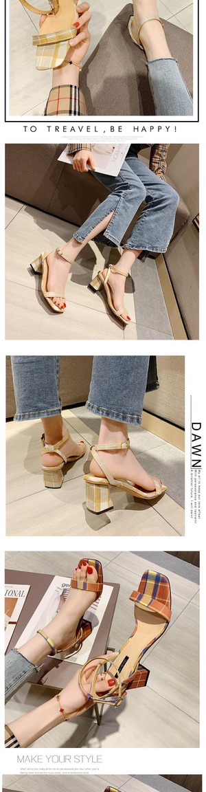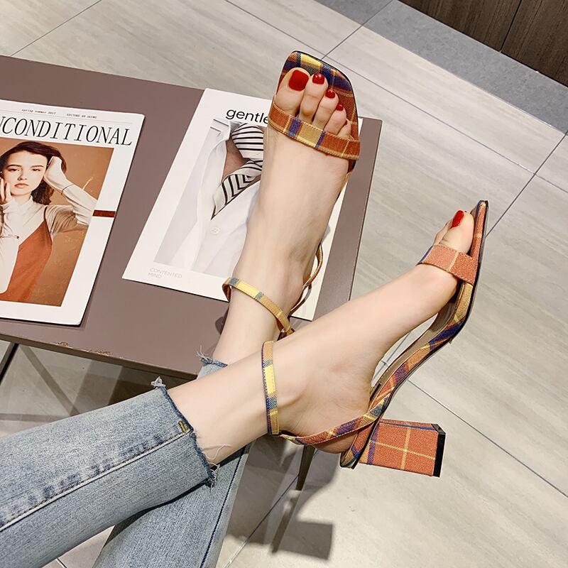 ネットレッドサンダル女性の妖精風2020夏の新しいバージョンの野生の単語の厚いヒールのオープントゥハイヒールの女性 部族の婦人靴6934585