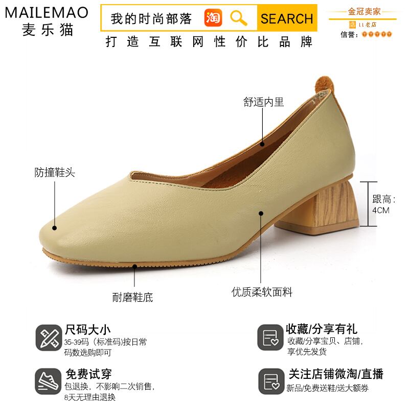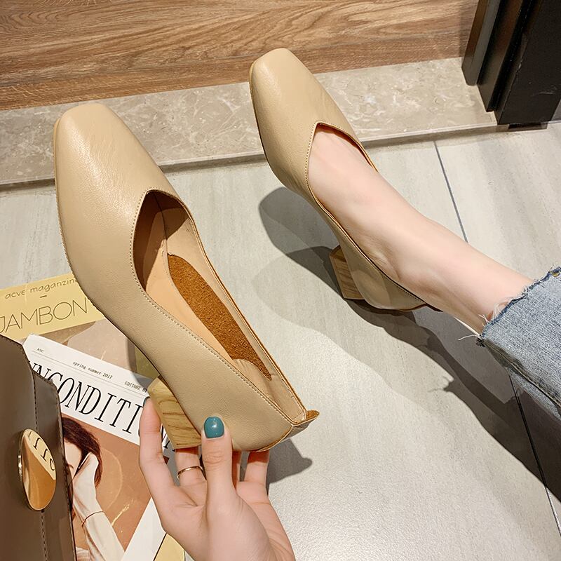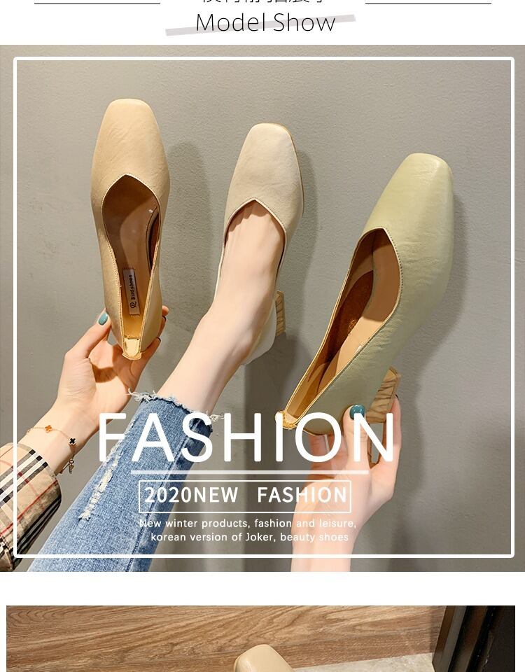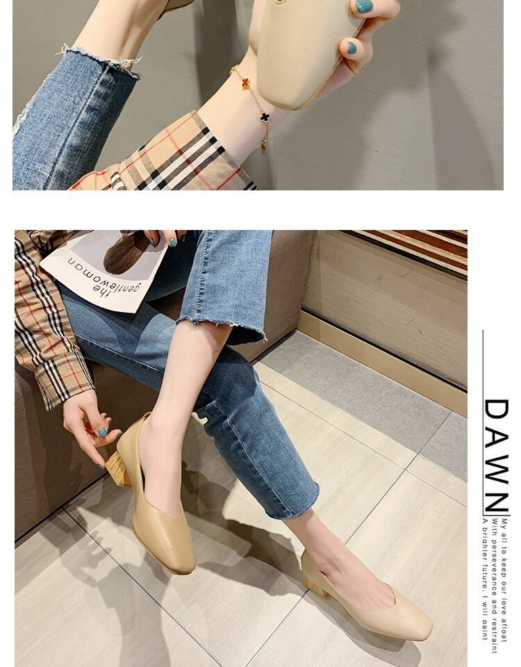 厚いヒールの靴の女性2020新しい春と夏のファッション野生のネットレッドインスタイドスクエアヘッド浅い口の作業靴 部族の婦人靴4157790