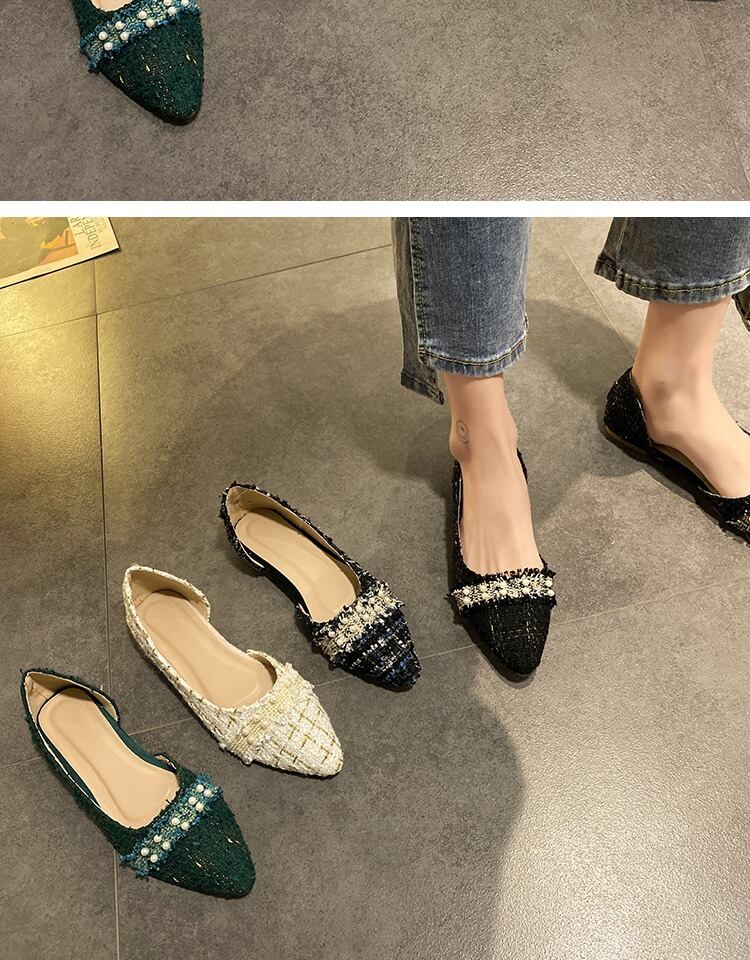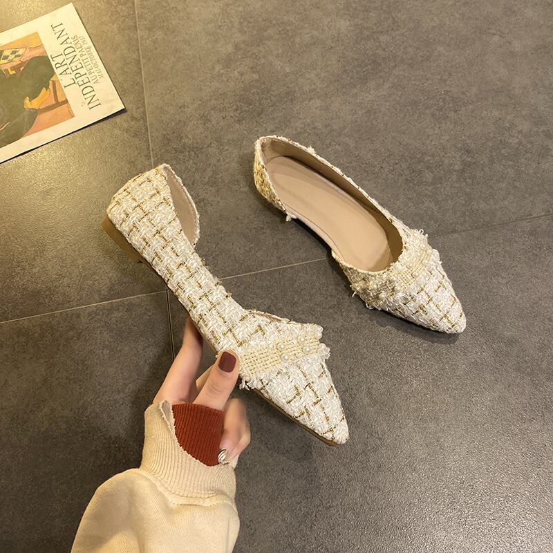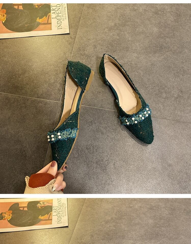 ネット赤フラットシューズ女性の2020年春の小さな新鮮で野生のファッションレトロおばあちゃんの靴の真珠のスクープシューズの潮 部族の婦人靴1065296