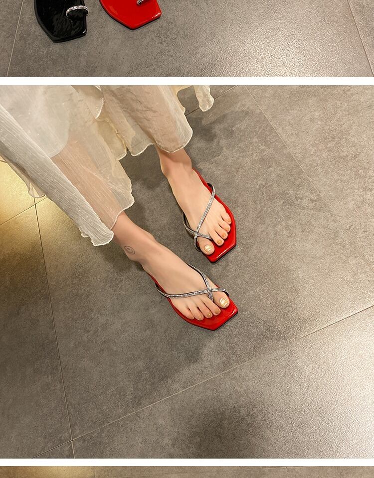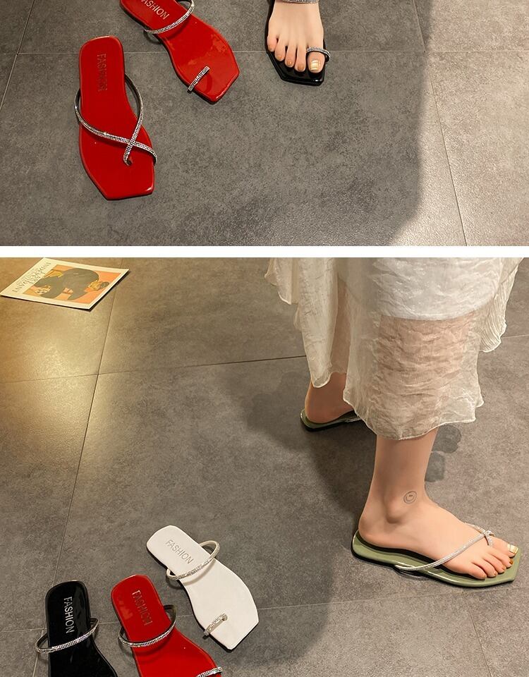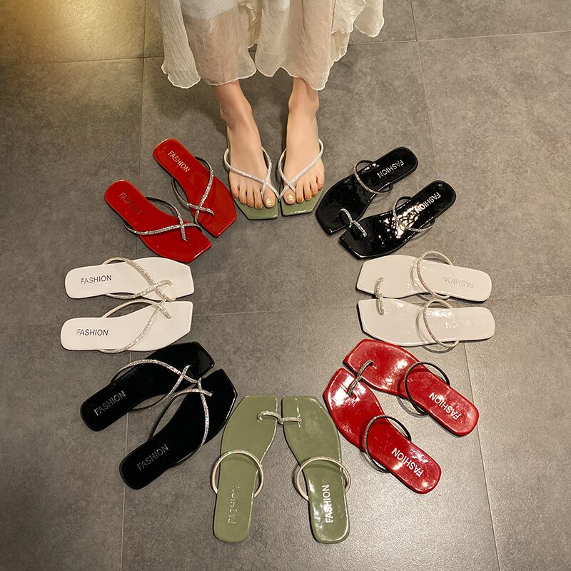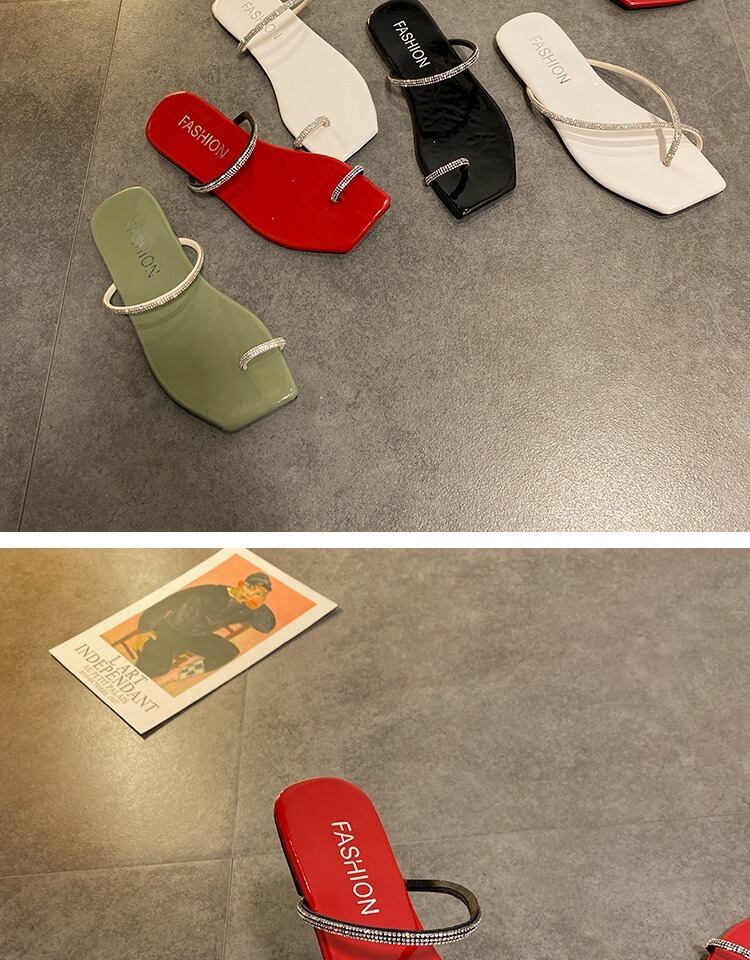 2020年夏の新しいネット赤の薄いベルトサンダルとスリッパ女性のアウターウェアファッションオープントゥラインストーンフラットボトムスリッパ 部族の婦人靴9401715