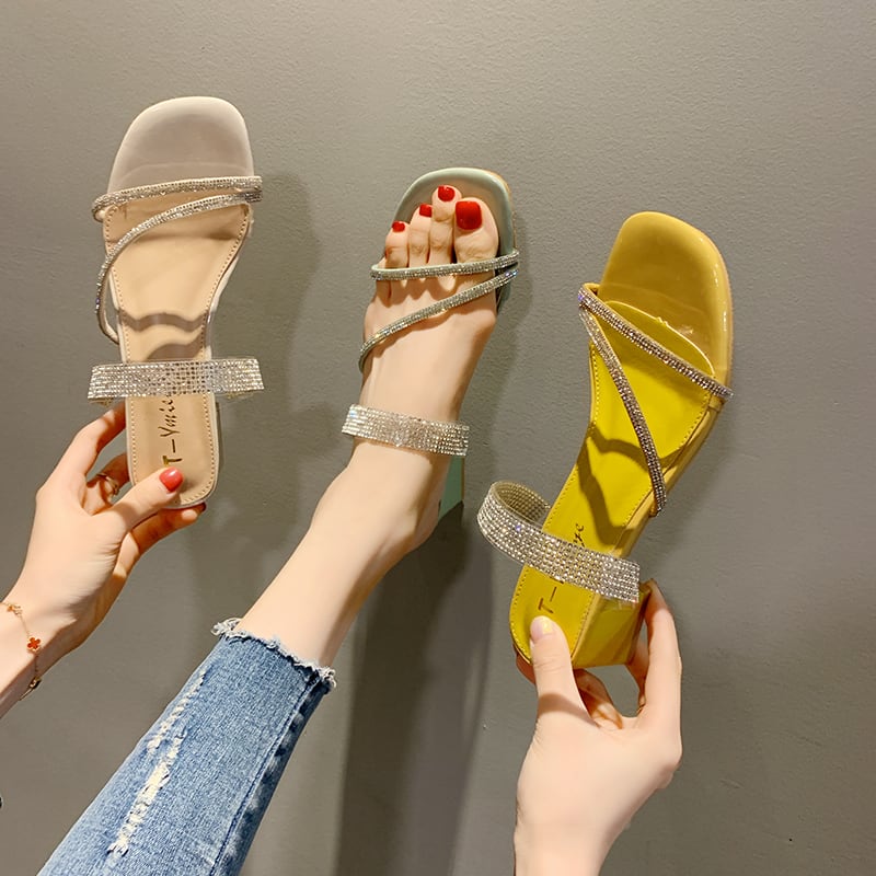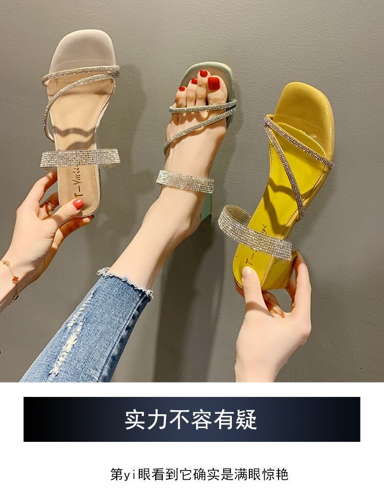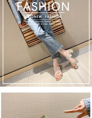 女性のサンダルとスリッパは2020年夏の新入生ラインストーンワードトロールレッドオープントゥ厚いヒール 部族の婦人靴3833449
