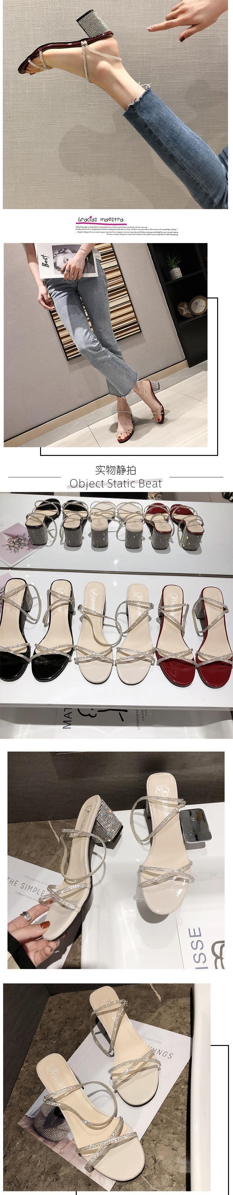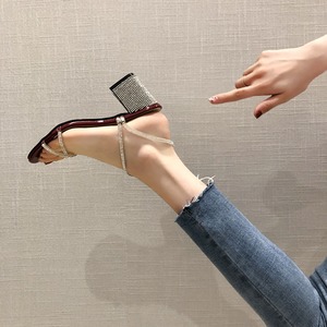 2020年夏の新しいラインストーン薄いベルトサンダル女性の妖精スタイルの厚いハイヒールの野生のネット赤い単語のバージョン 部族の婦人靴4859944
