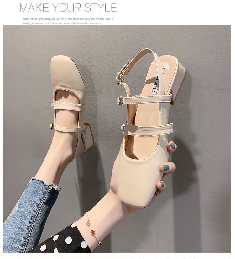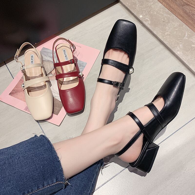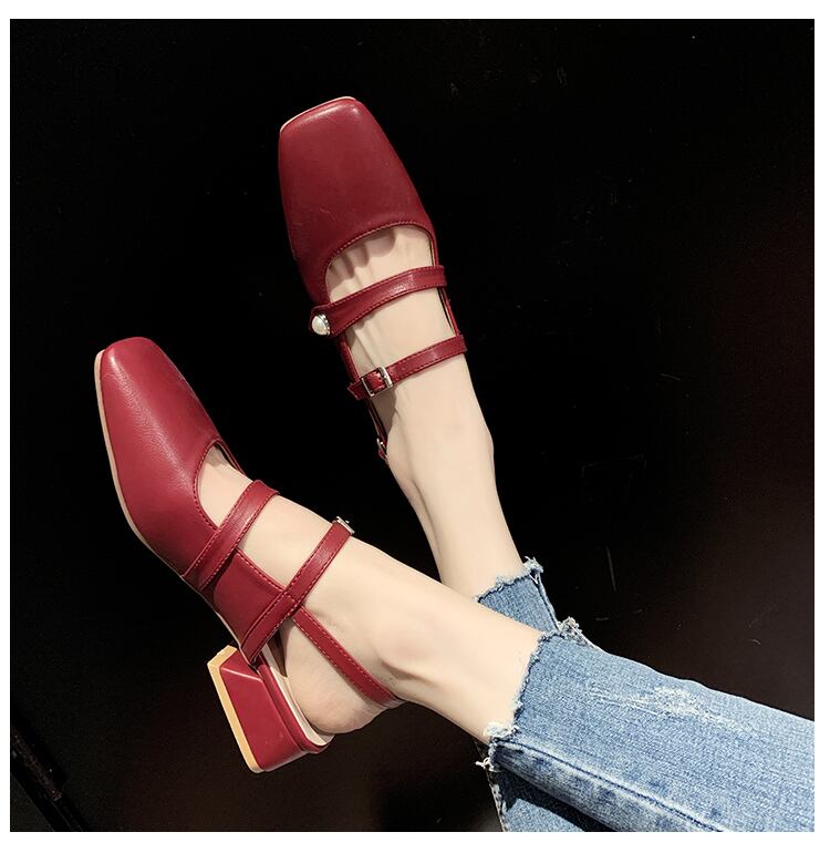 厚いヒールサンダル女性2020春新しいファッションネット赤レトロインスタイドパールシンプルホウトウスクエアヘッドローマの靴 部族の婦人靴1296129