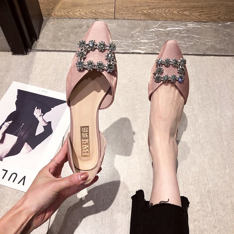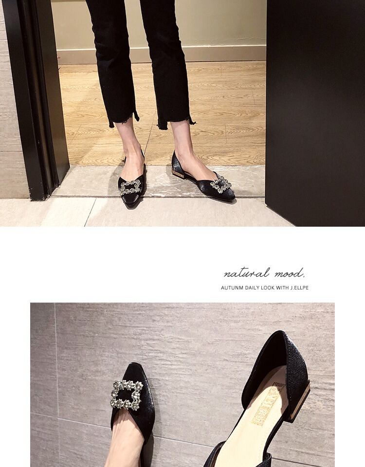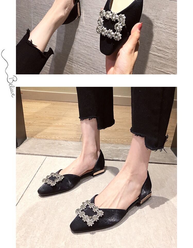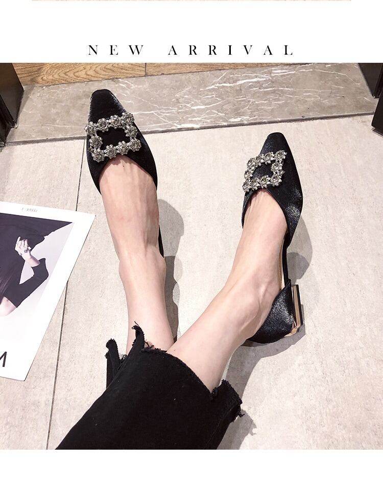 スクープシューズ2020新しいシングルシューズ女性のファッション野生のネットレッドイン潮ラインストーン浅い口の靴女性の厚いヒールの靴 部族の婦人靴3983787
