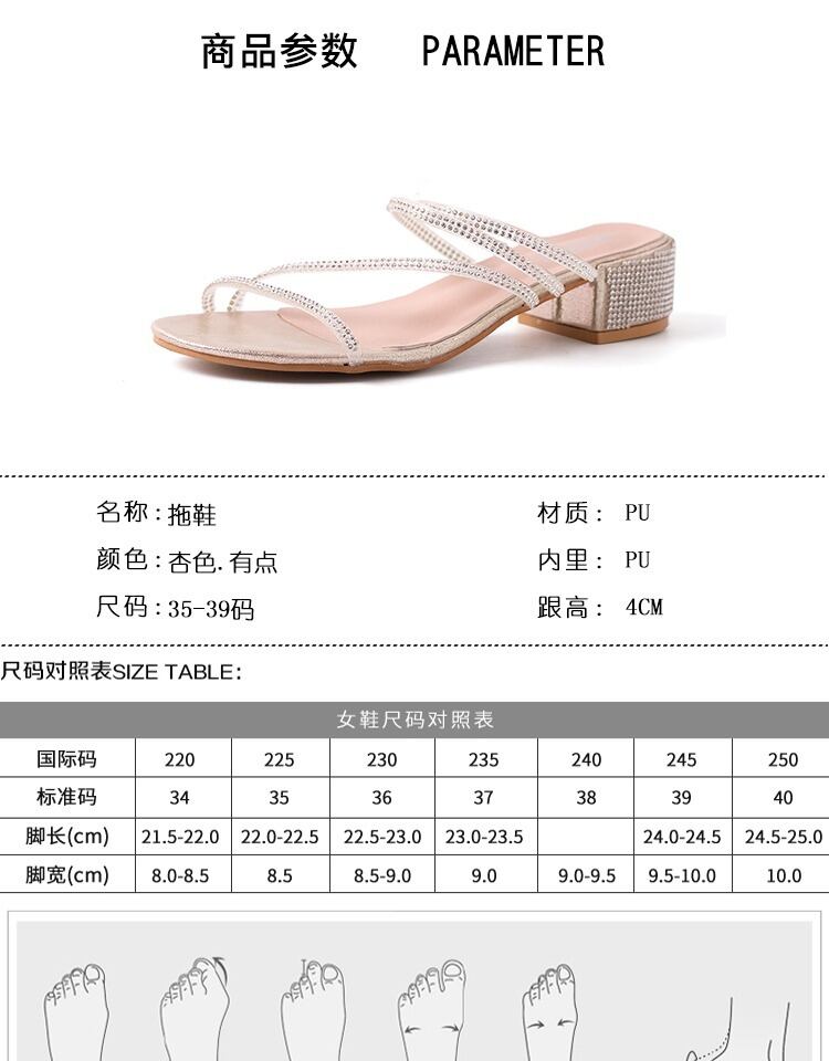 2つのサンダル女性2020新しいins妖精スタイル野生ラインストーンネット赤ミドルヒール厚いヒールスリッパ女性が潮を着用 部族の婦人靴3423312
