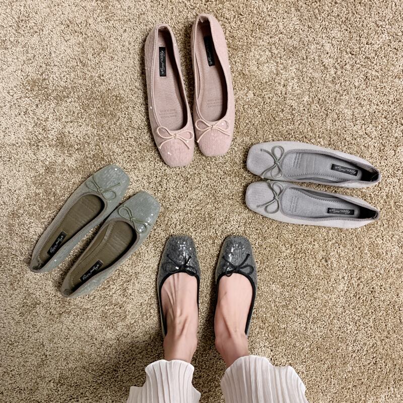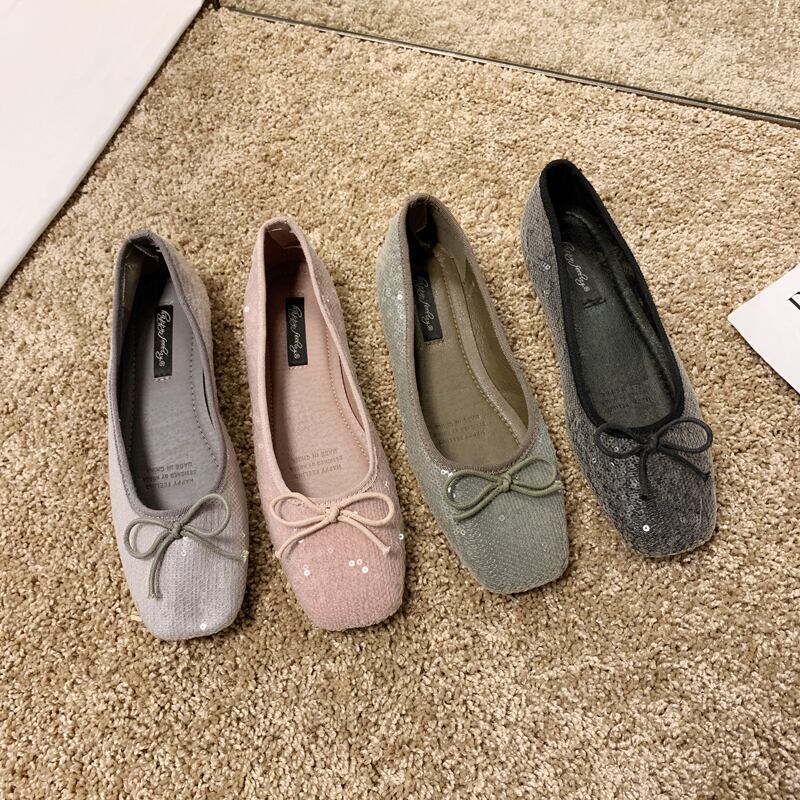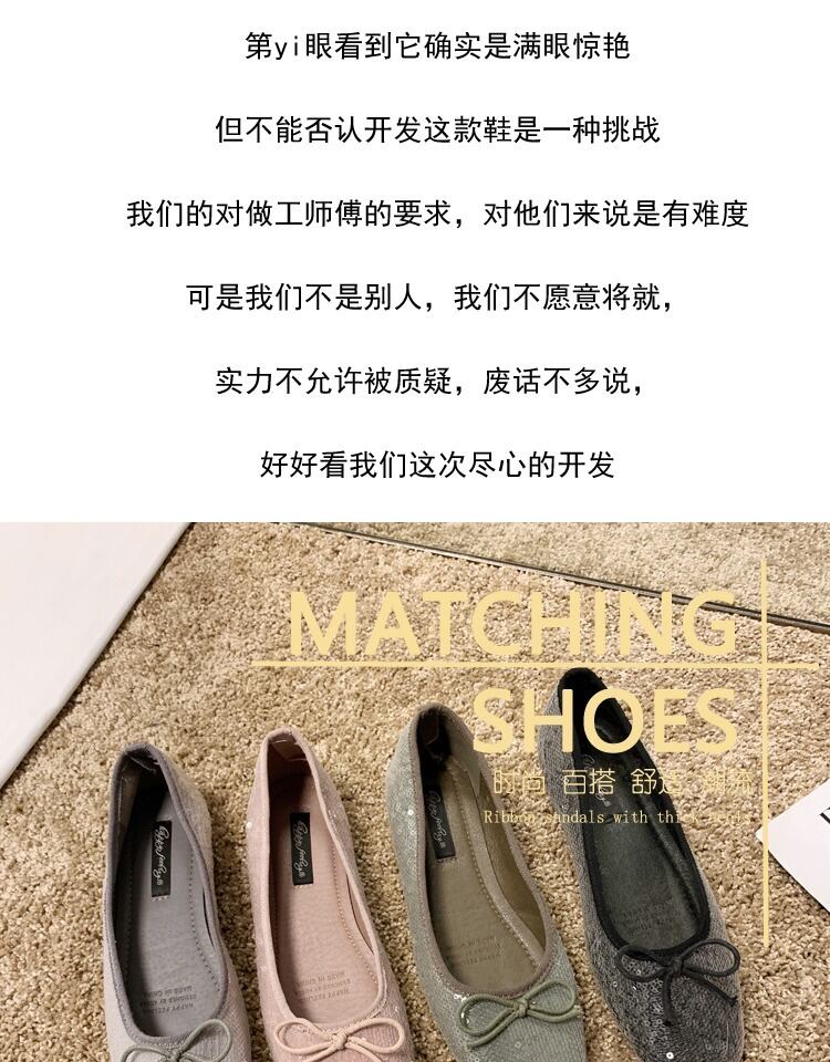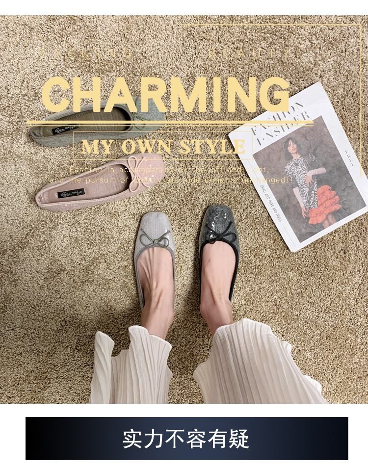 ネットレッドフラットシューズ妖精2020春の新しい弓スパンコールスクエアヘッドエンドウ靴浅い口スクープシューズ 部族の婦人靴3309766