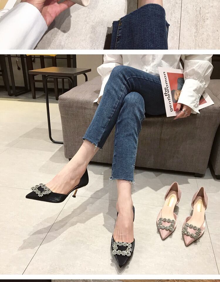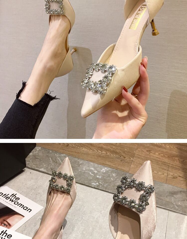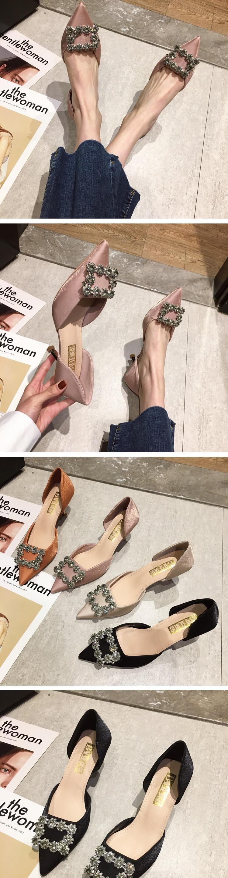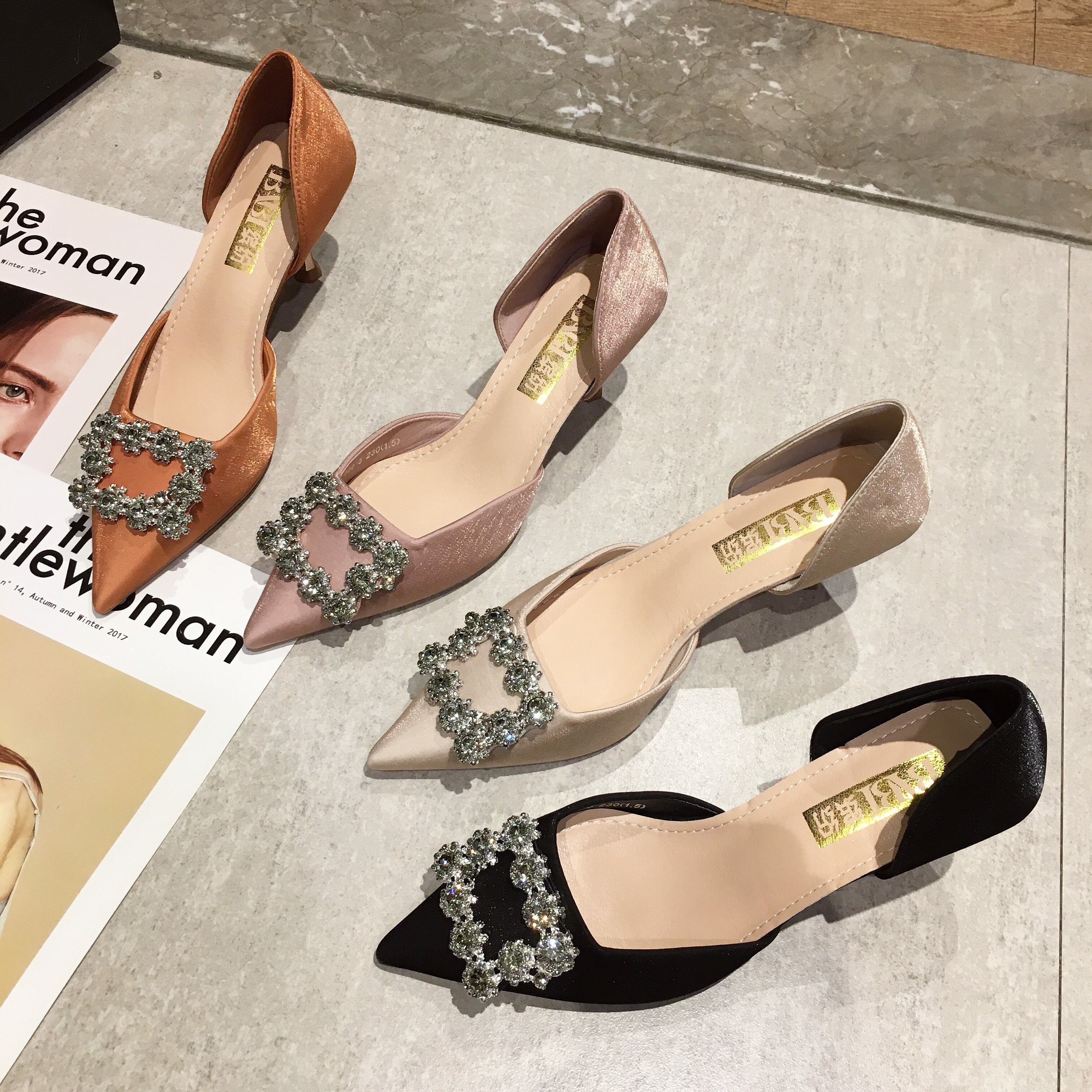 女性のハイヒール春2020新しいバージョンの金属の正方形のバックル野生の穏やかな妖精の風の赤い赤い尖った単一の靴 部族の婦人靴0389604