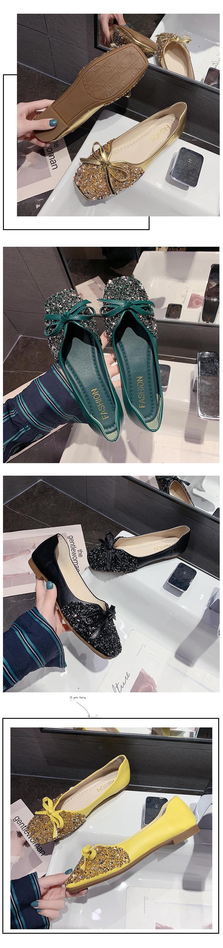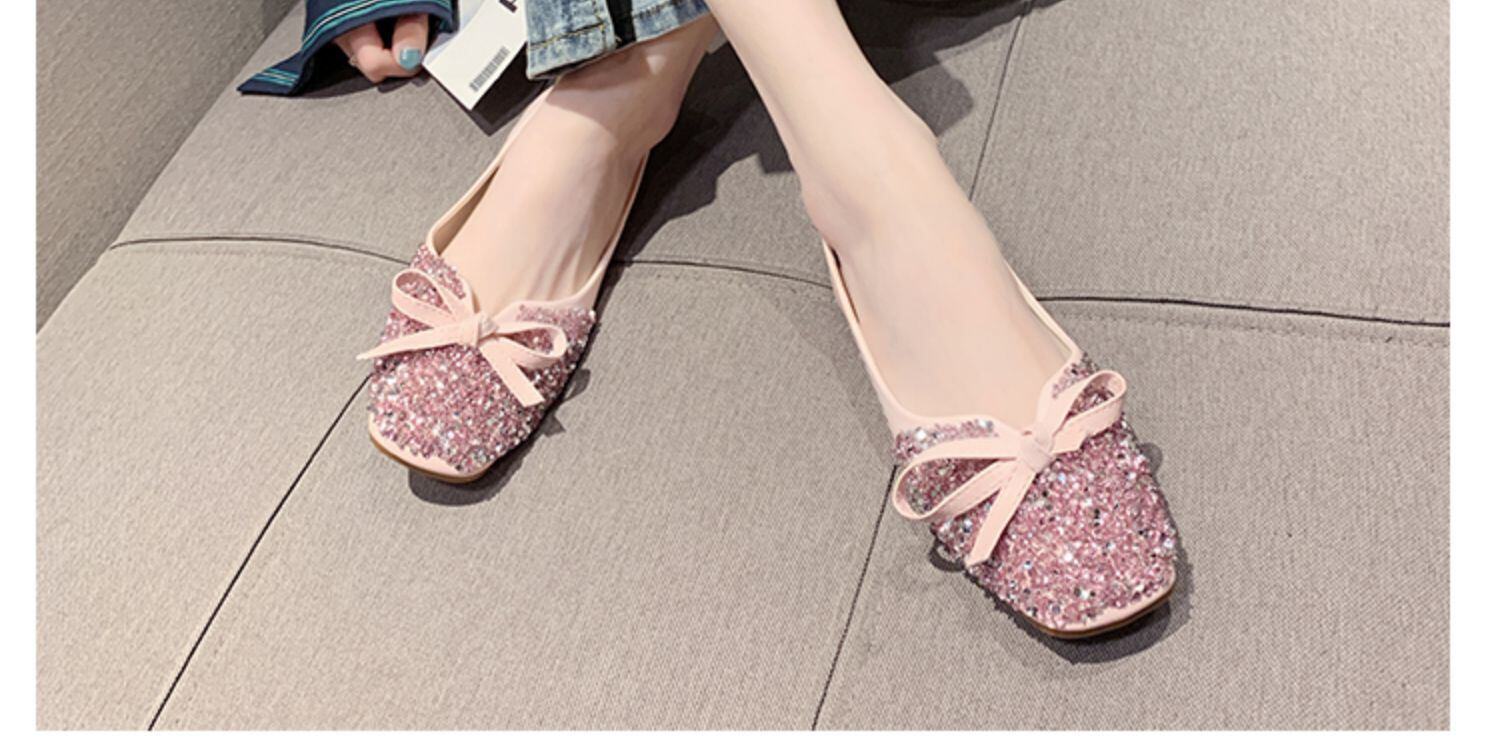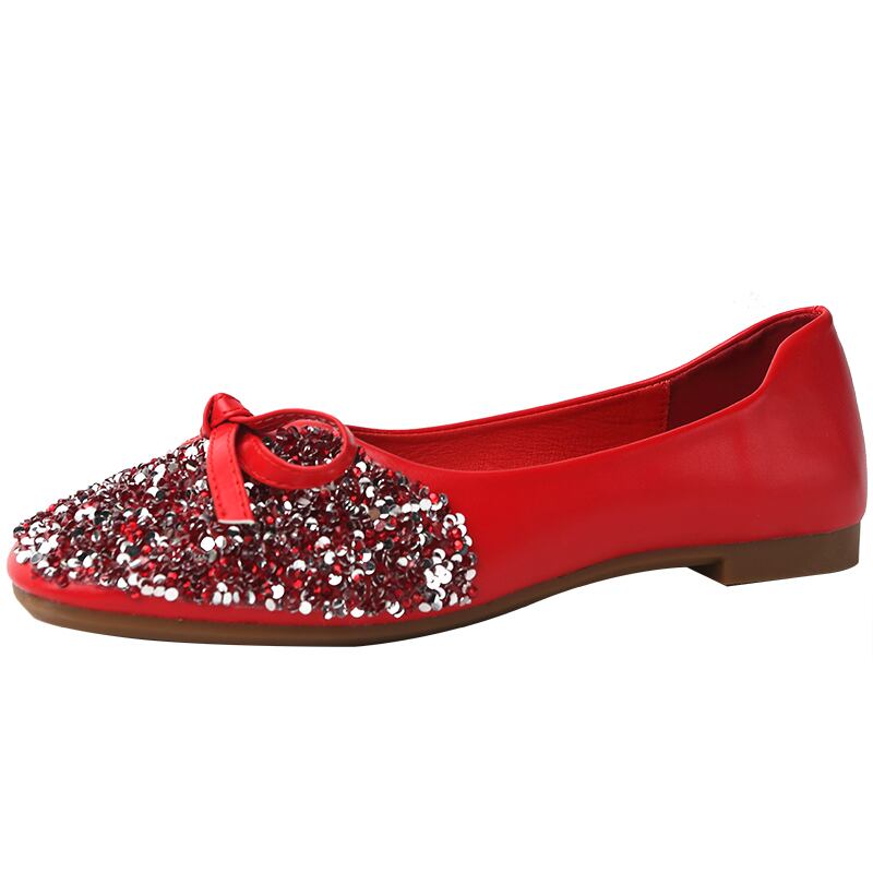 フラットシューズ女性2020新しい春と夏の弓スパンコールネット赤い浅い口スクープシューズドライブエンドウ靴 部族の婦人靴2413171