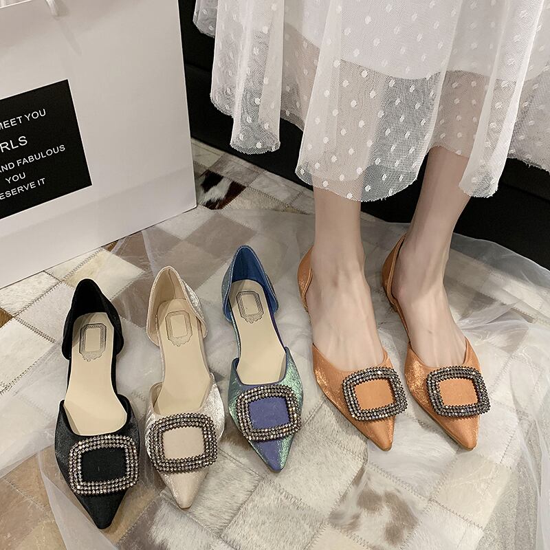 単一の靴の女性の2020年春の新しいバージョンの野生のラインストーンのフラットスクープシューズネット赤い妖精のスタイルのペダルエンドウ靴 部族の婦人靴6113610