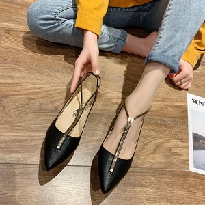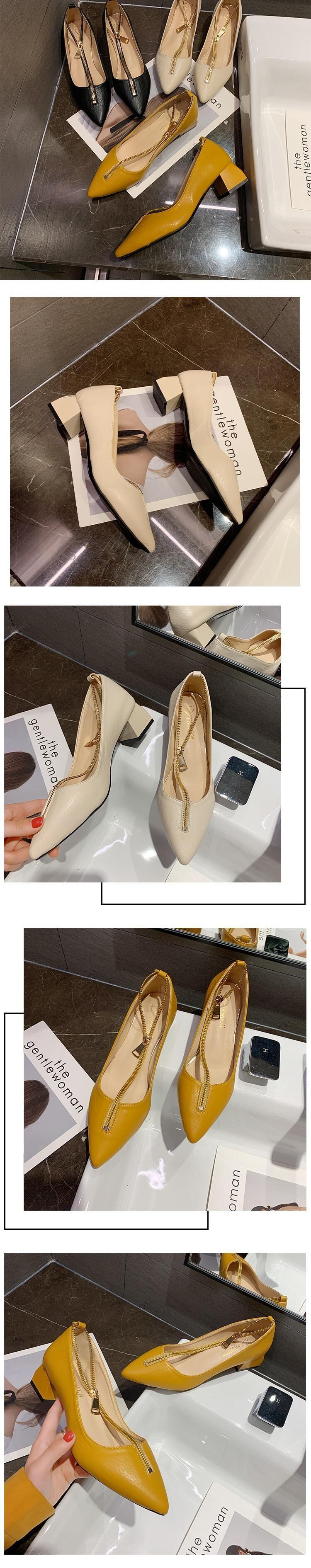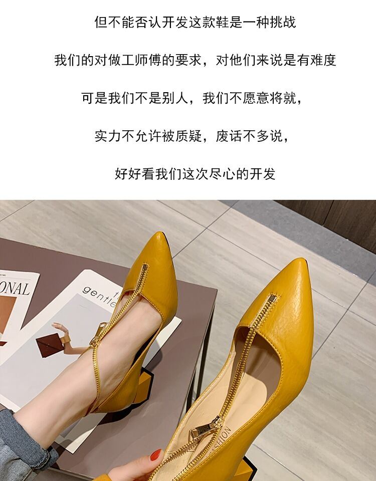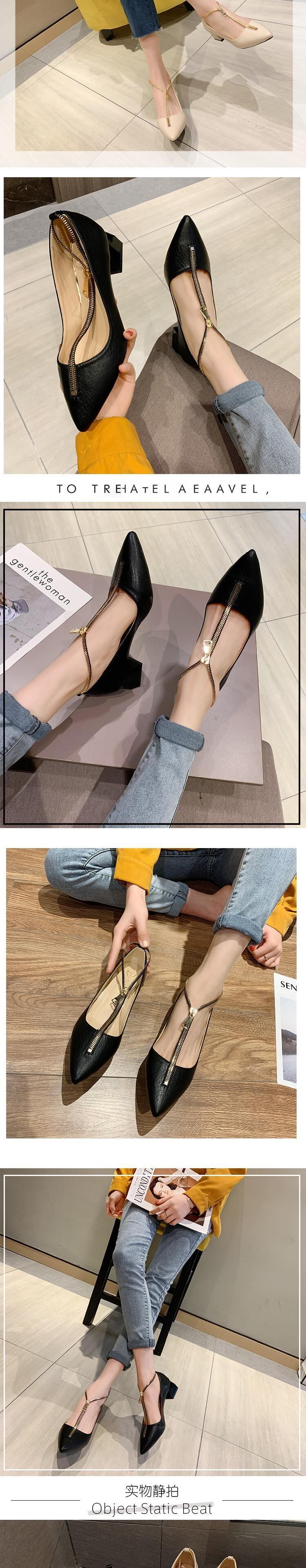 2020年春に新しいスタイルのフレンチハイヒールの女性の厚いヒールは野生の新しいジッパーのファッションシューズのネットレッドバージョンを指摘しました 部族の婦人靴4658735