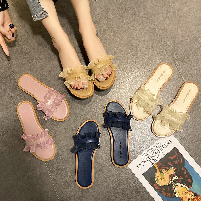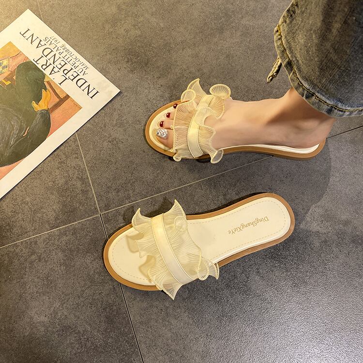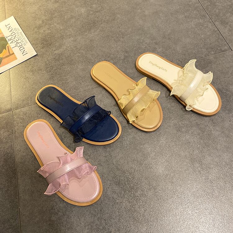 サンダルとスリッパの女性は、2020年夏のフリル付きファッションオープントゥネットレッドフェアリーフラットボトムフラットドラッグの新しいバージョンを着用します 部族の婦人靴9956550