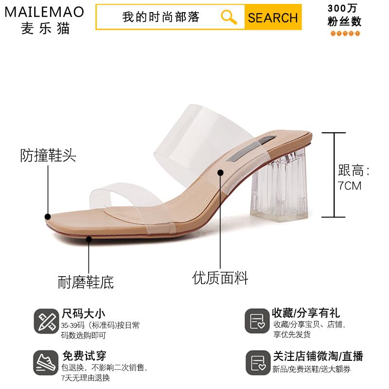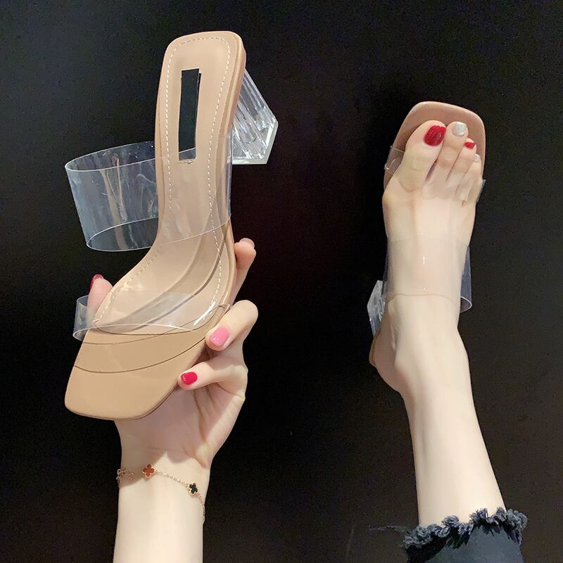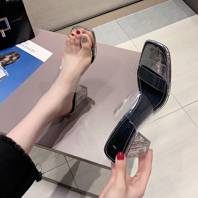 純赤いスリッパ女性の摩耗ファッション202新しいスタイル0夏の野生の透明な結晶と厚いヒールの高いヒールのドラッグ 部族の婦人靴4297562