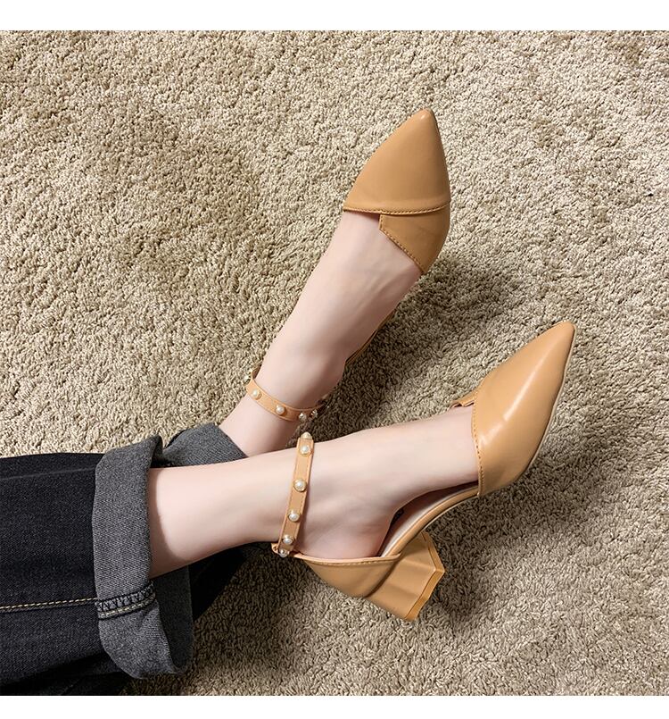 包頭のサンダル女性の妖精スタイル2020新しい春と夏のバージョンのネット赤いファッションパール野生の尖った厚いヒールの靴 部族の婦人靴5916057