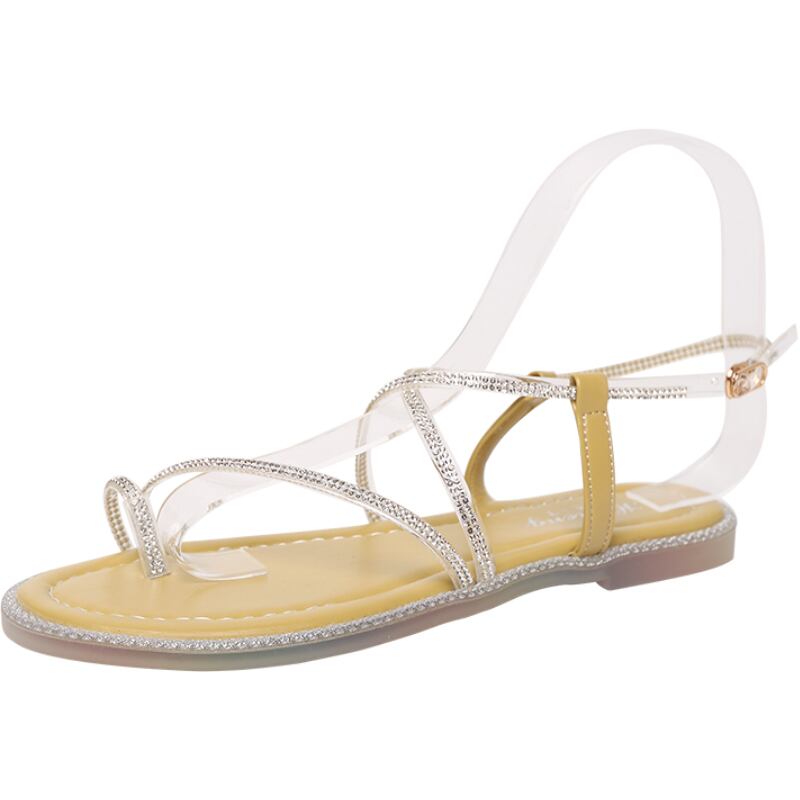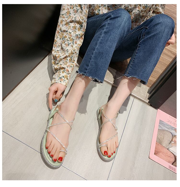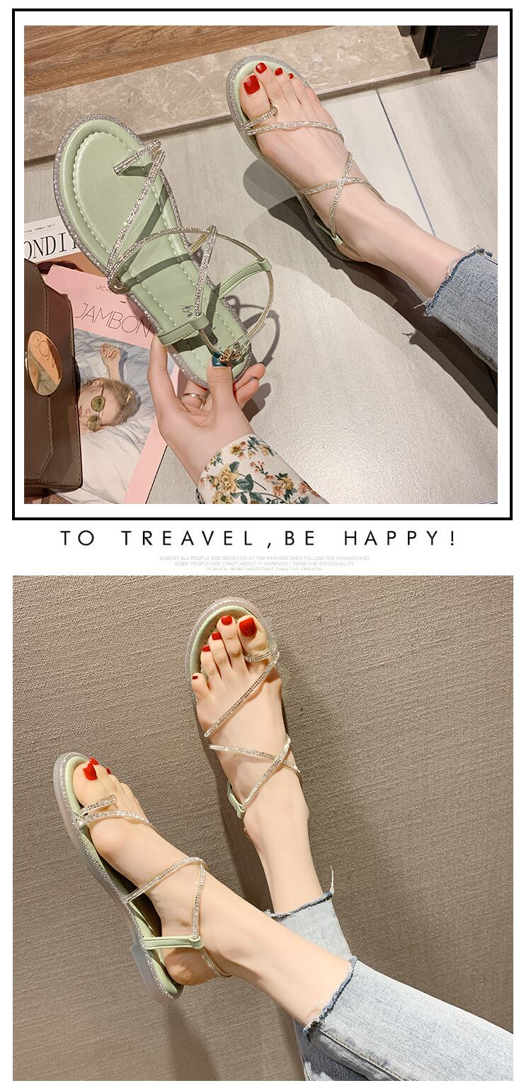 ラインストーンファッションサンダル女性2020夏の新しいバージョンの野生のネットレッドフラットボトムオープントゥネットレッドの妖精ローマの靴 部族の婦人靴1809399