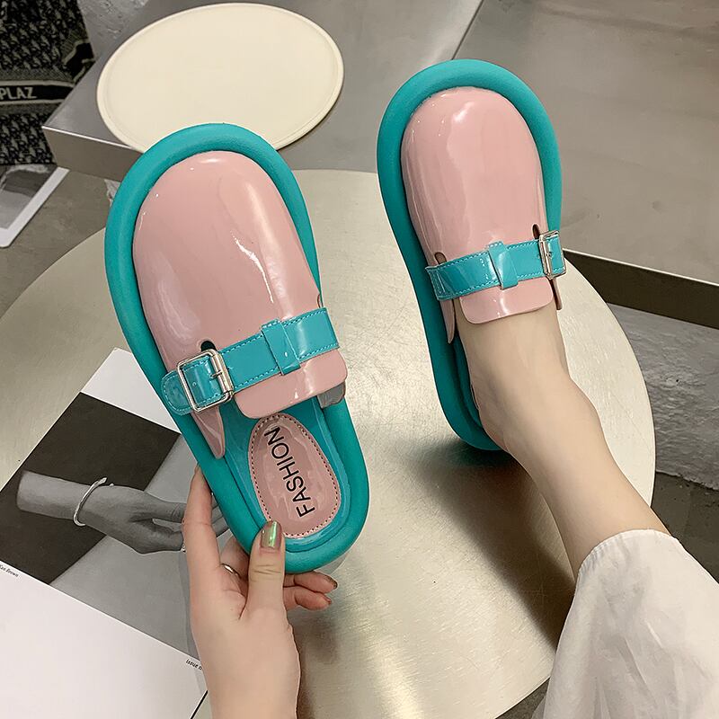 包頭ハーフスリッパ女性の摩耗2020新しいinsバージョンキャンディーカラーcomtableビッグヘッドかわいいスリッパ女性 部族の婦人靴7796445