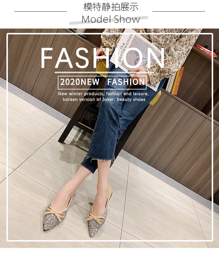 シングルシューズ女性の2020年春の新しいバージョンのフラットボトムの妖精の風の赤い赤い尖った尖ったスパンコールの野生のエンドウ豆の靴 部族の婦人靴7790362