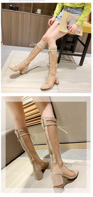 ブーツレディースクールブーツ2020春と秋insメッシュ中空セクシーブーツファッションワイルドシックファッションブーツタイド 部族の婦人靴8264296