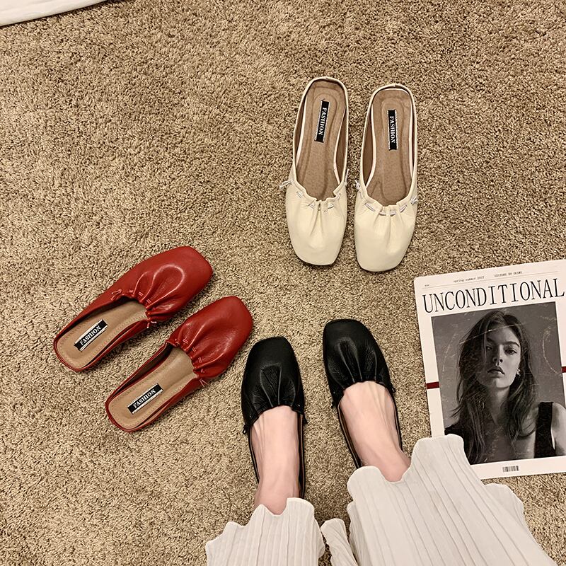 包頭ハーフスリッパ女性2020春の新しい学生のファッション野生のネット赤フラットスクエアラバシューズ女性 部族の婦人靴0564379