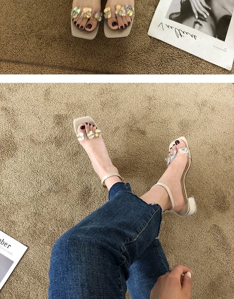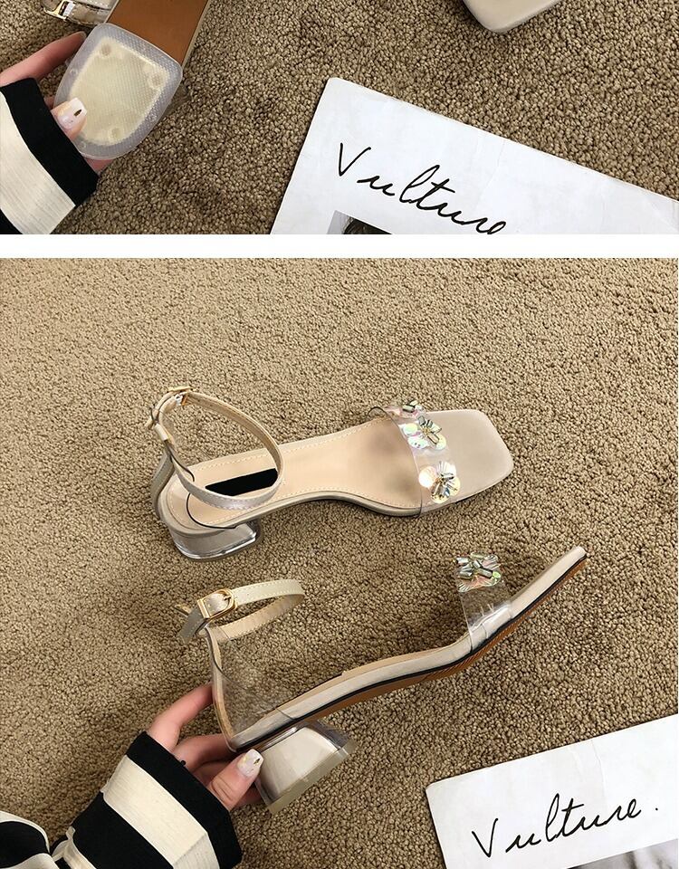 女性の妖精のスタイル2020新しいネット赤いイブニングシューズ透明なラインストーンワードベルト野生のかかとのファッション 部族の婦人靴1478357