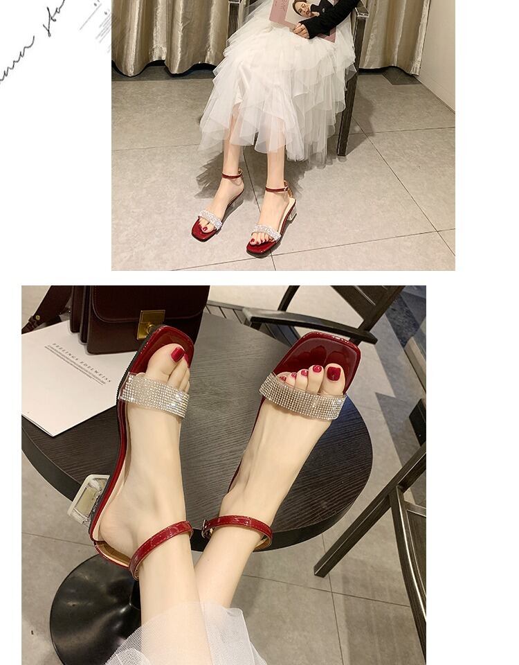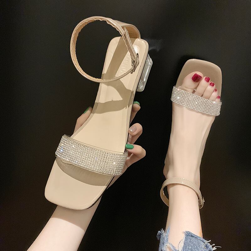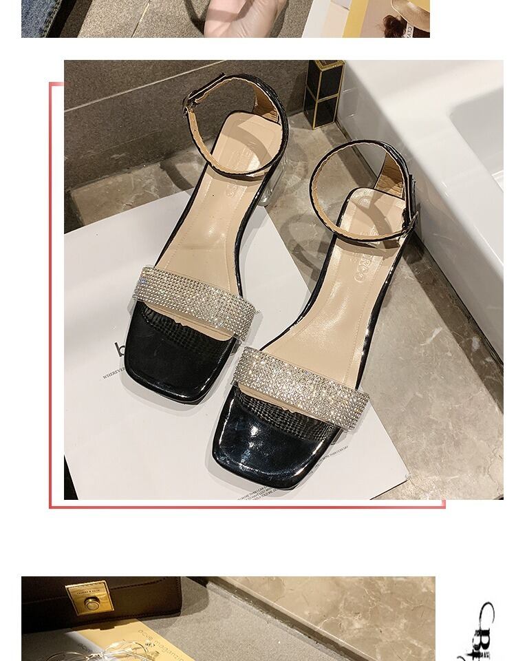 フェアリースタイルのスクエアヘッドオープントゥ透明な厚いヒールの女性の靴の潮でラインストーンの単語のサンダル女性2020夏の新バージョン 部族の婦人靴6461543