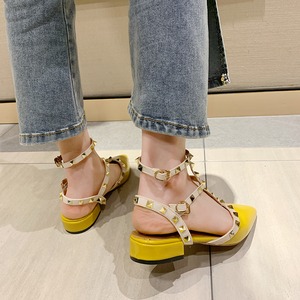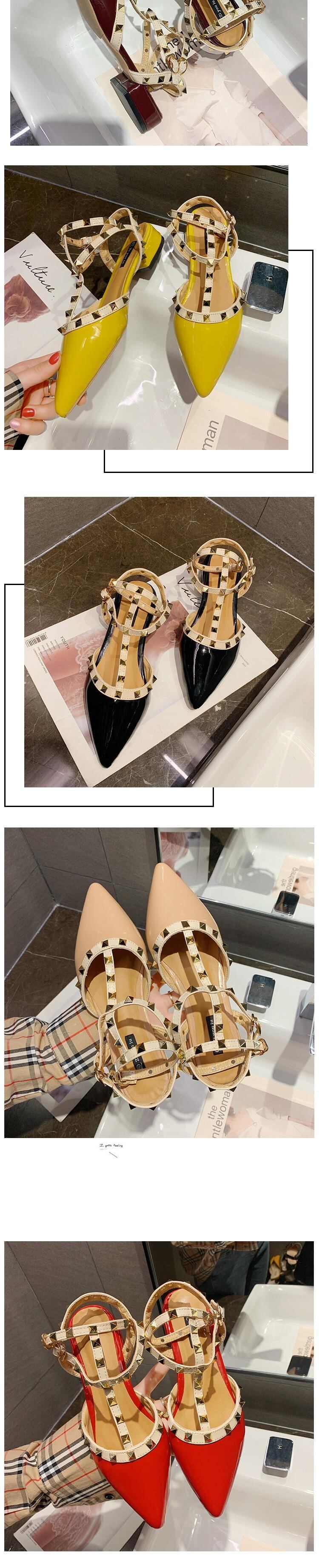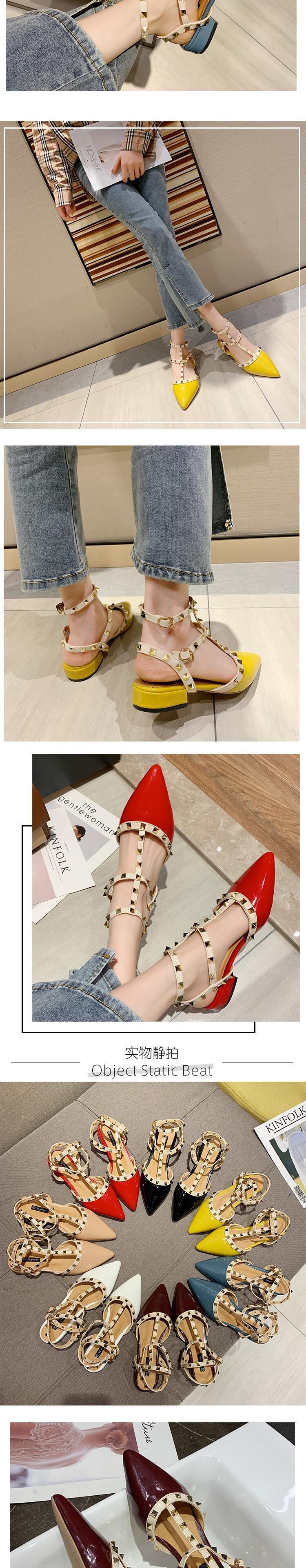 ローマの単一の靴で野生のパテントレザーミドルヒール厚いヒールファッションワードの先のとがったサンダル女性2020新しい春バージョン 部族の婦人靴7257615