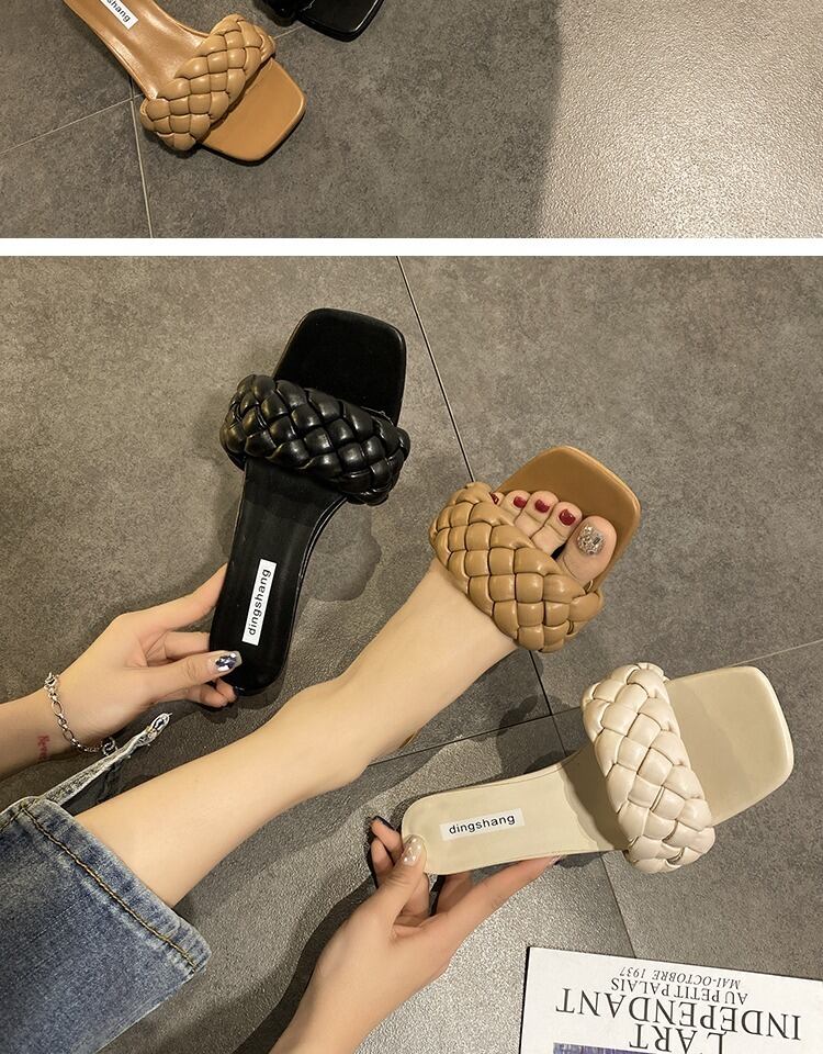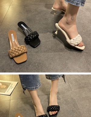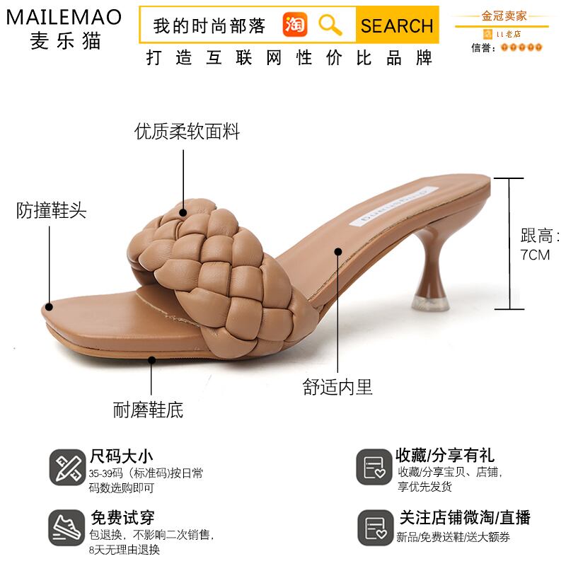 スリッパの女性は、2020年の新しい春と夏のバージョンのネット赤のファッション織りオープンつま先の野生のハイヒールの単語のスリッパ潮を着用します 部族の婦人靴4931972