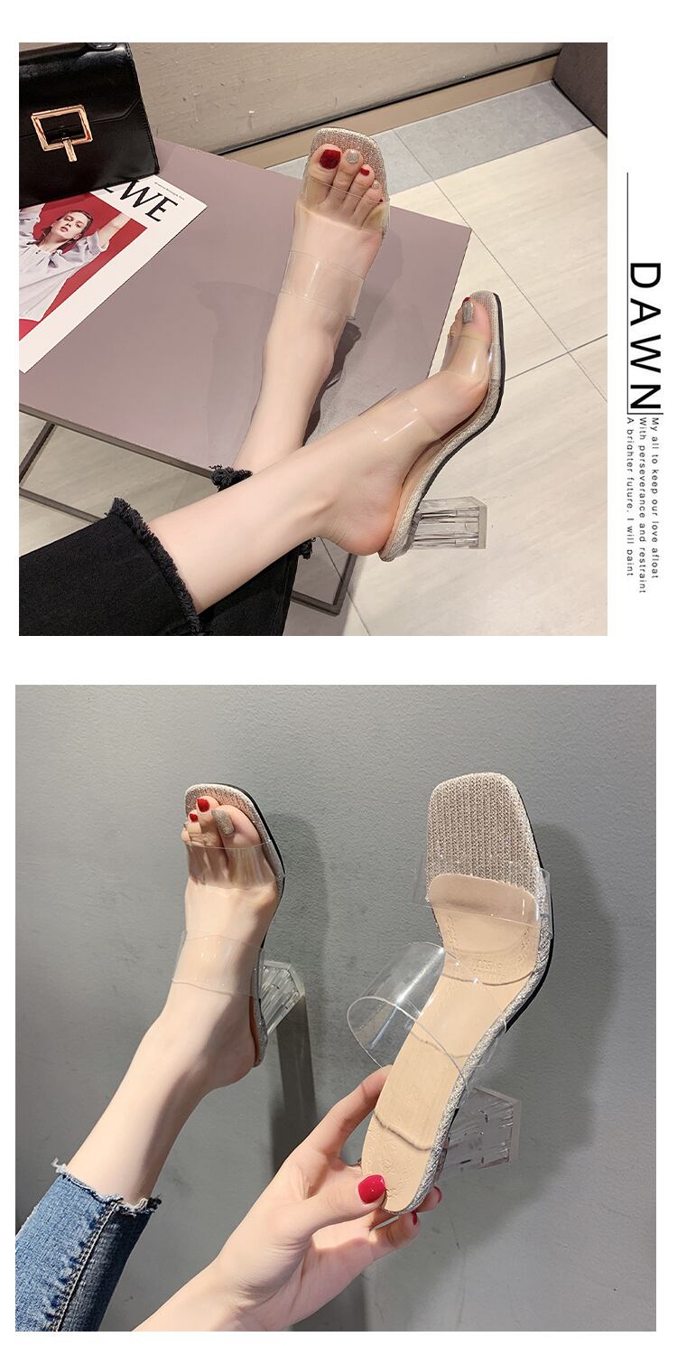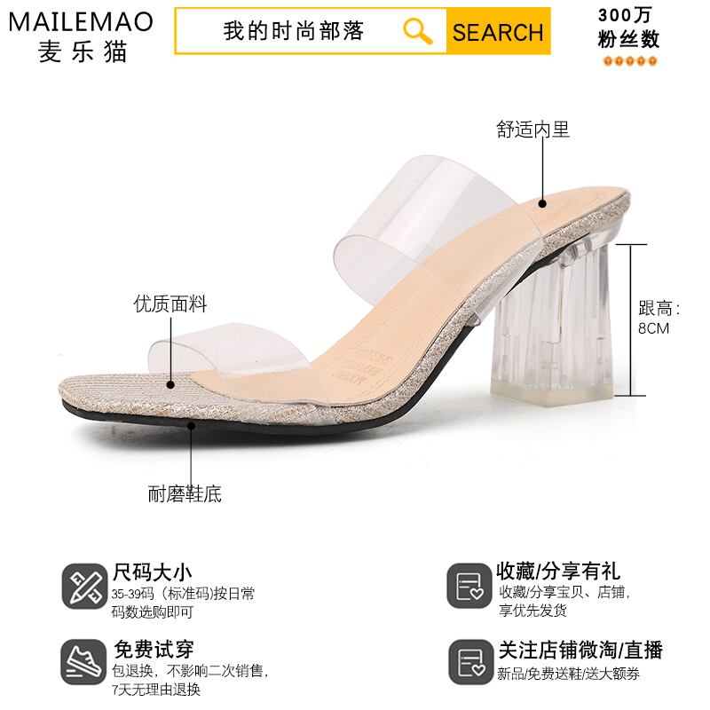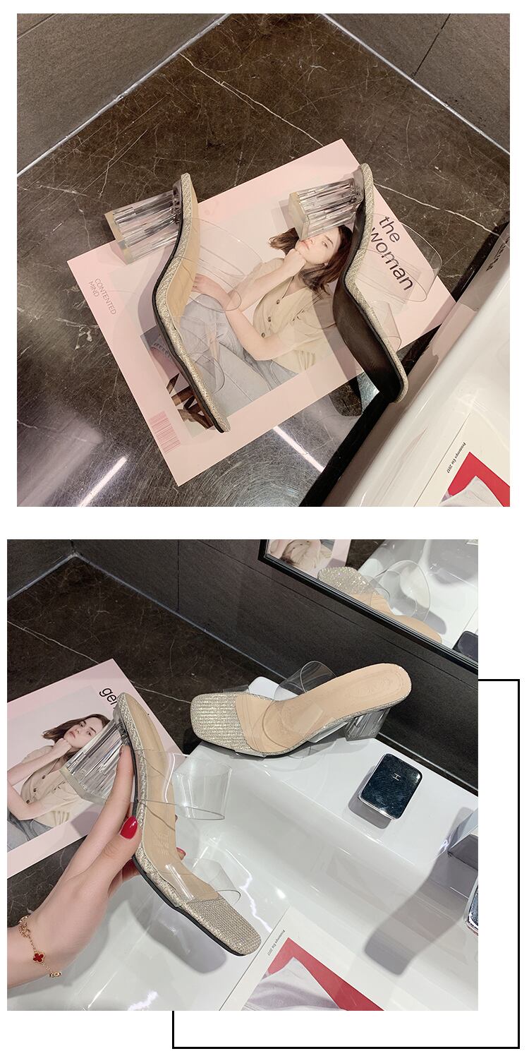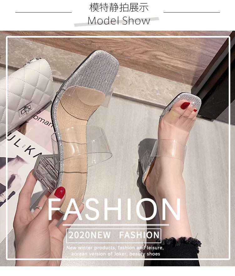 スリッパはinsの潮2020夏の新しいファッション野生の厚い赤いネットの透明なベルトのハイヒールの女性を着用します 部族の婦人靴8938907