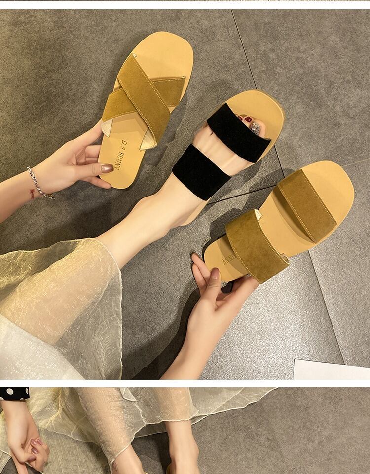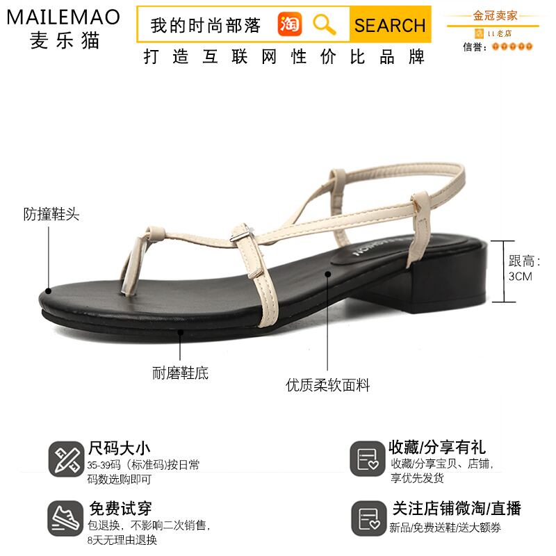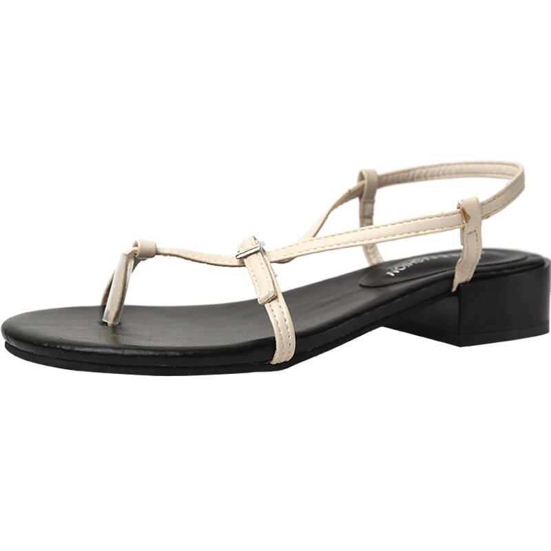 サンダル2020新しい女性の春と夏の薄いベルトワードバックル学生野生の厚いヒールサンダルとスリッパ潮 部族の婦人靴7979551