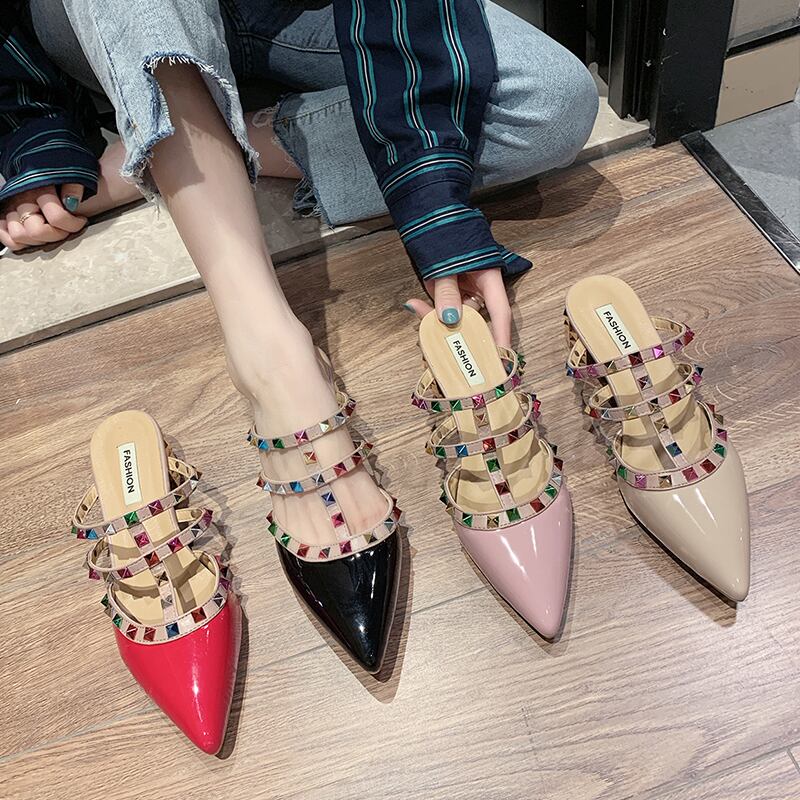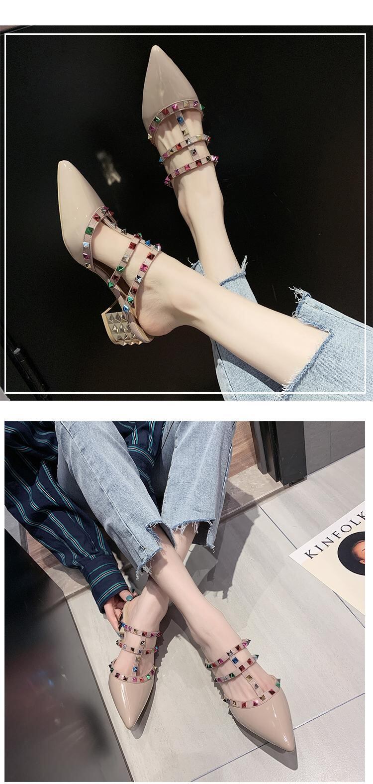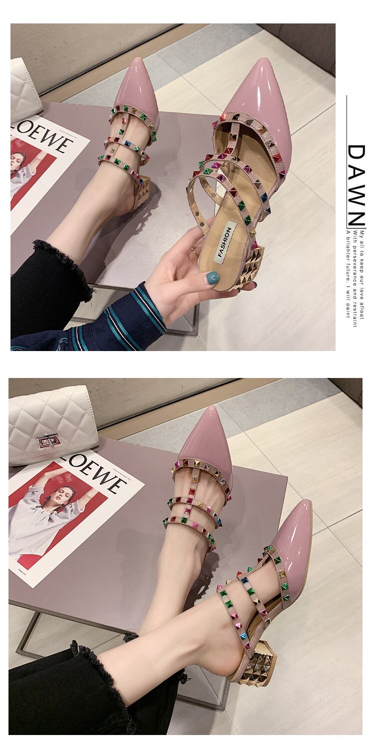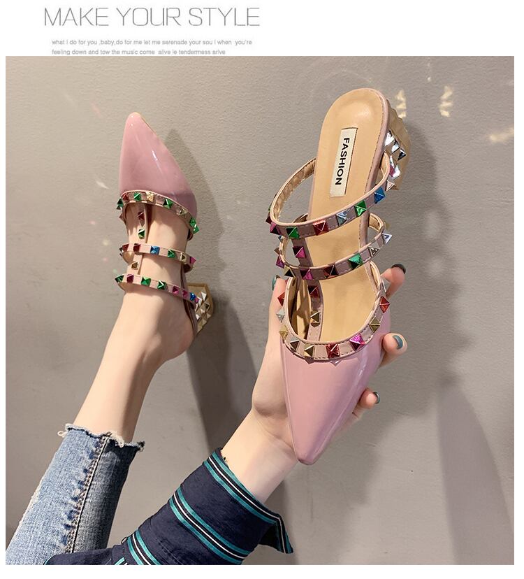サンダルとスリッパ女性のハーフスリッパ包頭夏の潮タイネット赤いスーパーファイヤー2020新しいミッドヒール厚いヒールスリッパ 部族の婦人靴6448580