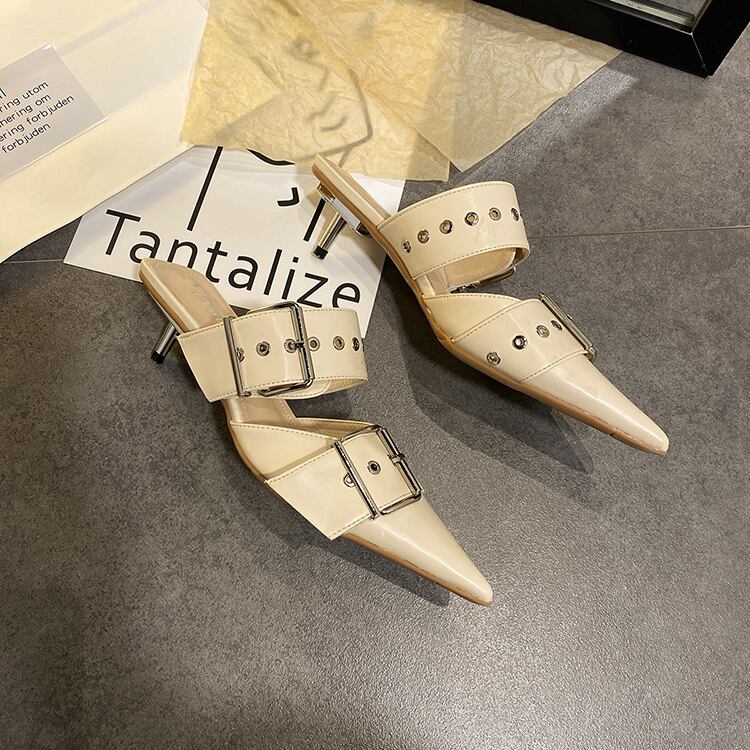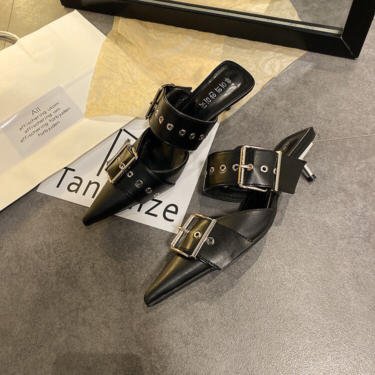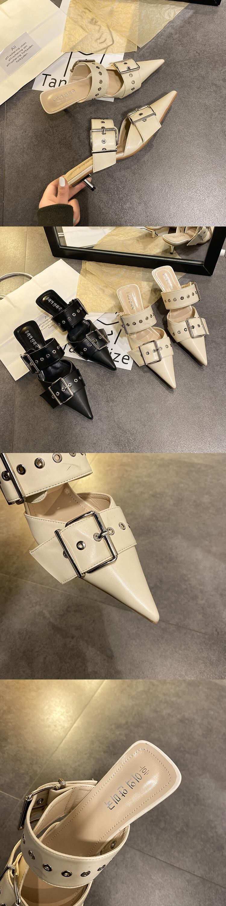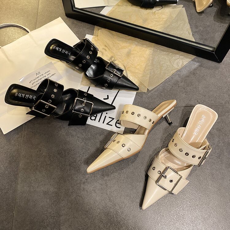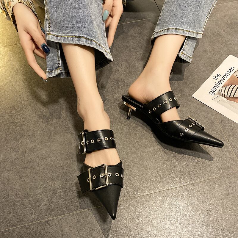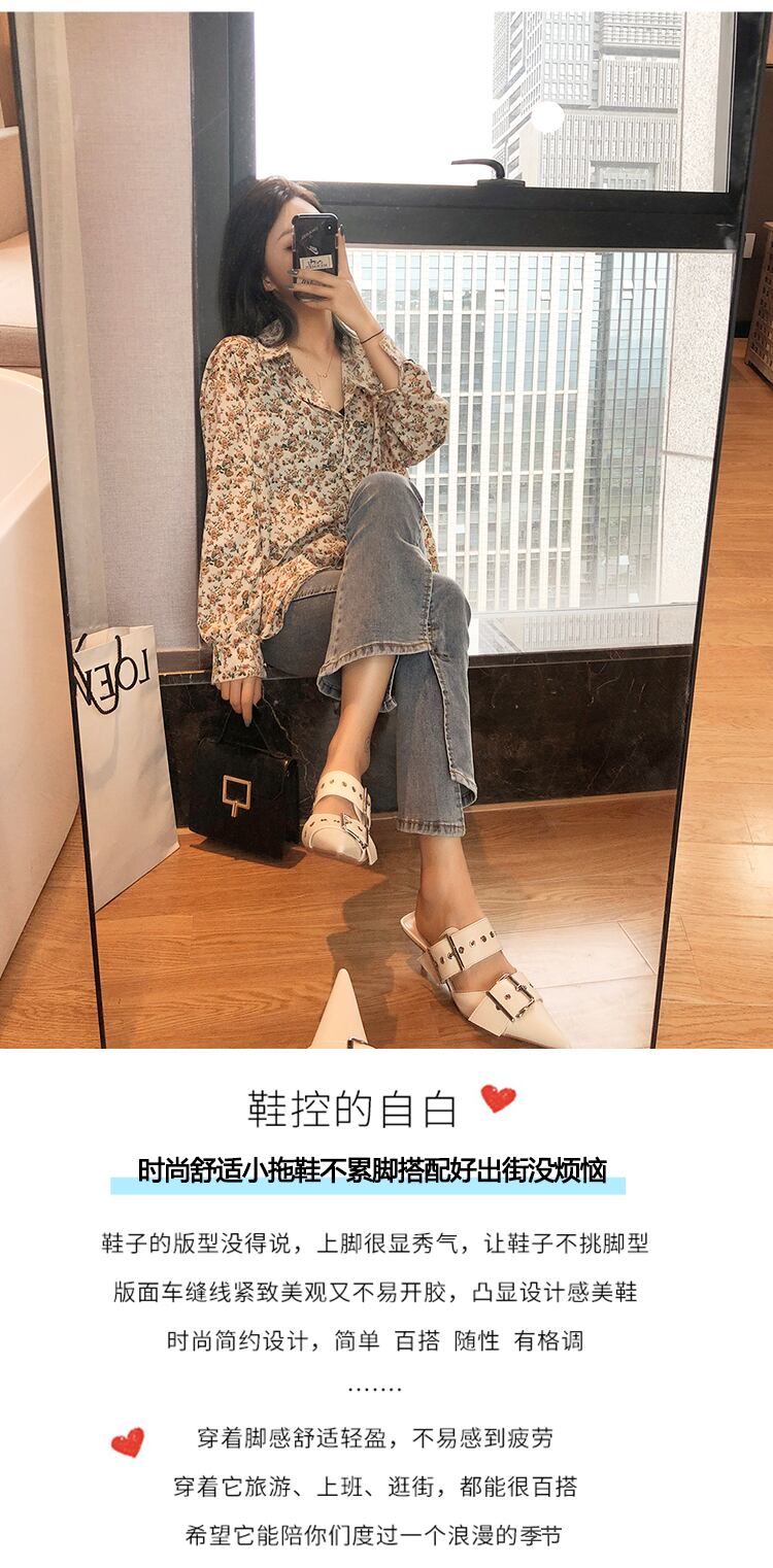 包頭ハーフスリッパ女性の薄いヒール2020新しい春と夏は、スカートネット赤い怠惰なローヒールハーフドラッグで小さな新鮮な摩耗 部族の婦人靴4525231