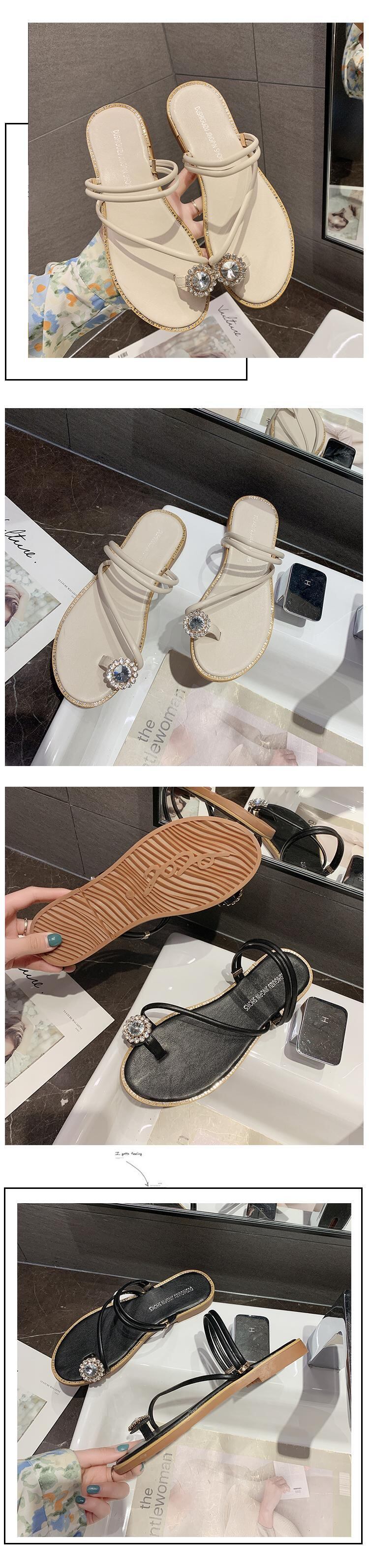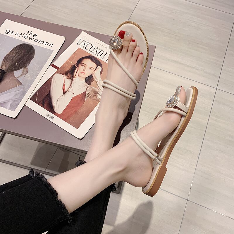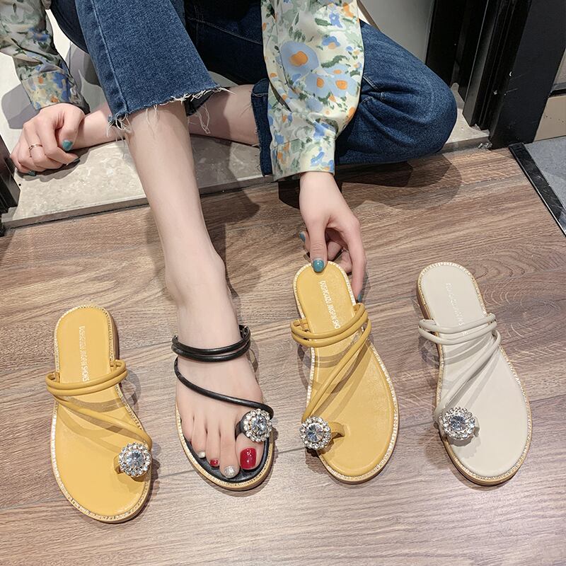 スリッパ女性の夏の摩耗2020春新しいファッションラインストーンワイルドクリップつま先ネット赤フラットボトム2つはビーチサンダルとスリッパを着用 部族の婦人靴0817069