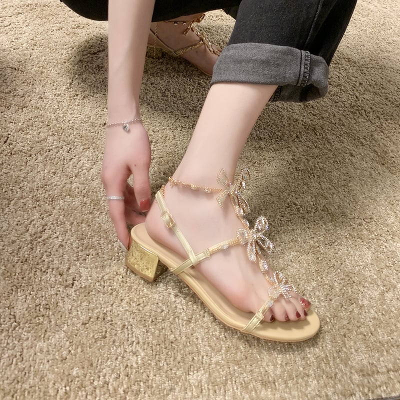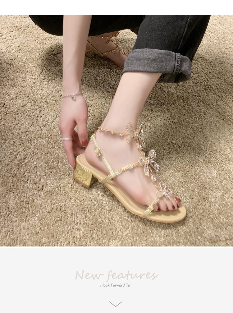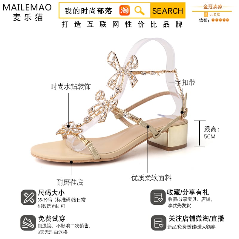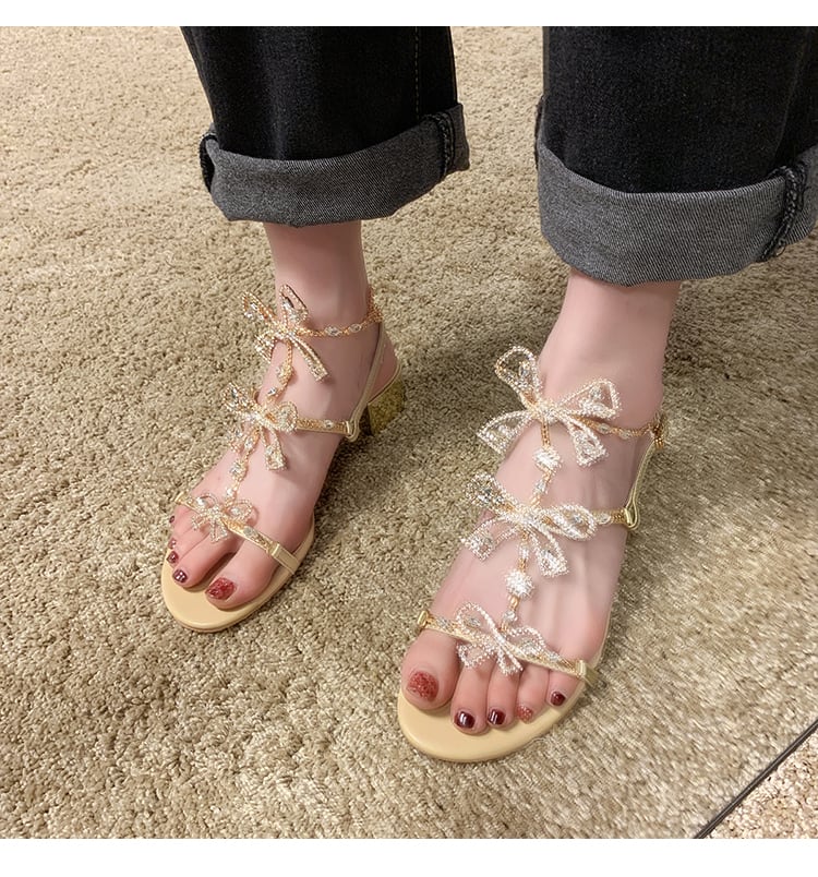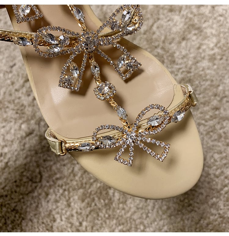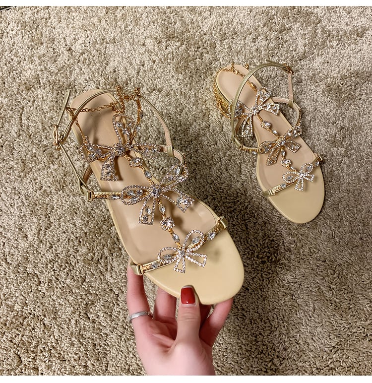 妖精風サンダル女性2020新しい夏のファッションネット赤野生厚いラインストーン弓弓ローマシューズ 部族の婦人靴1520654