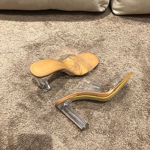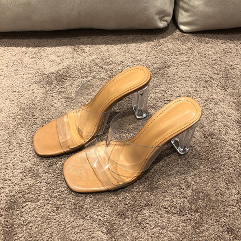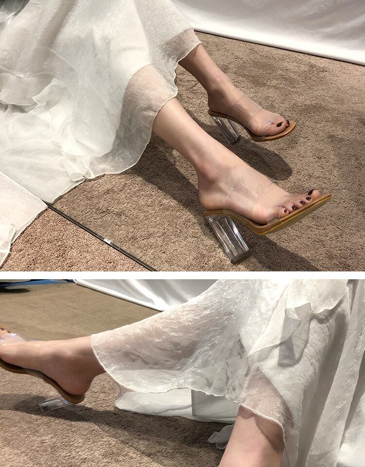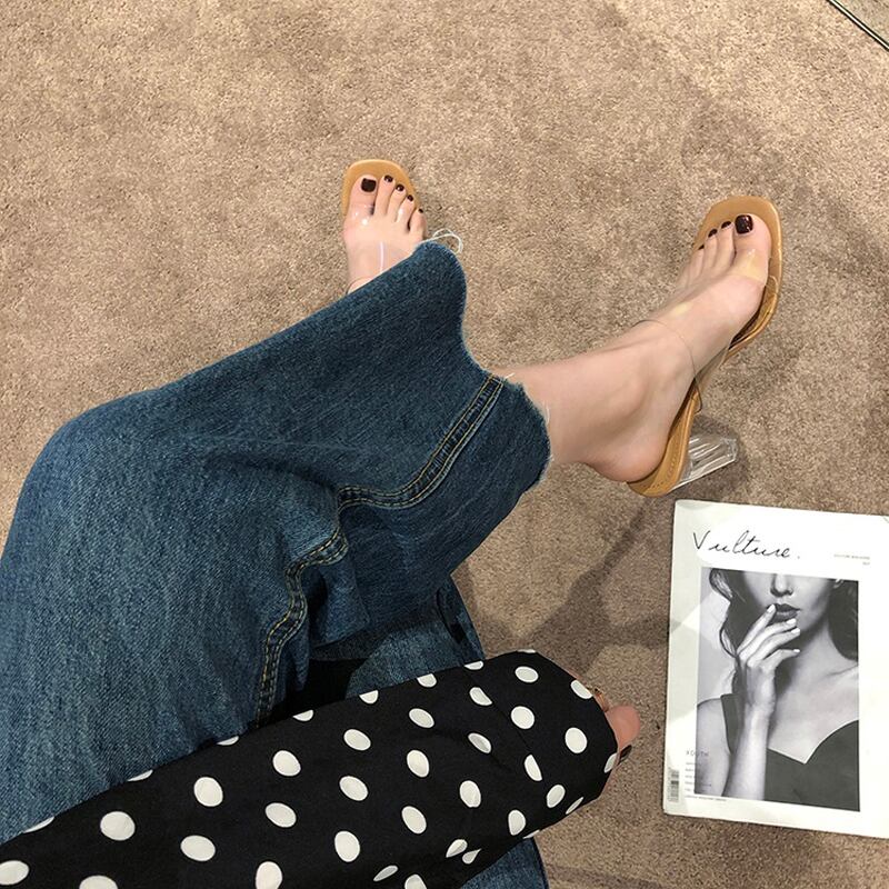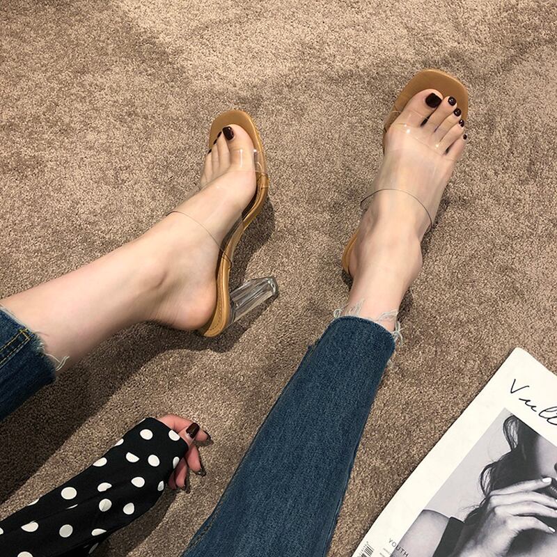 透明なスリッパ女性はスタイリッシュな野生の2020新しい夏のネット赤いスーパーハイヒールクリスタル厚いヒールサンダルを着用します。 部族の婦人靴7532461