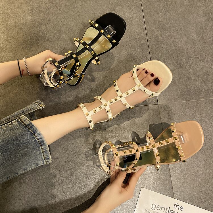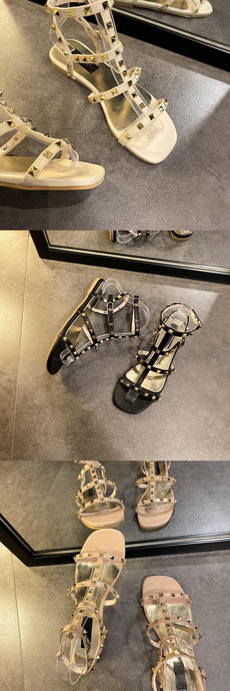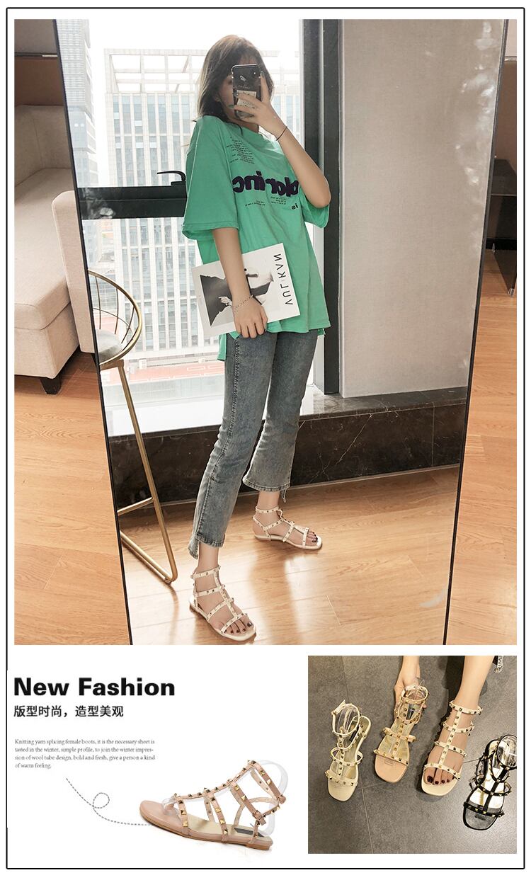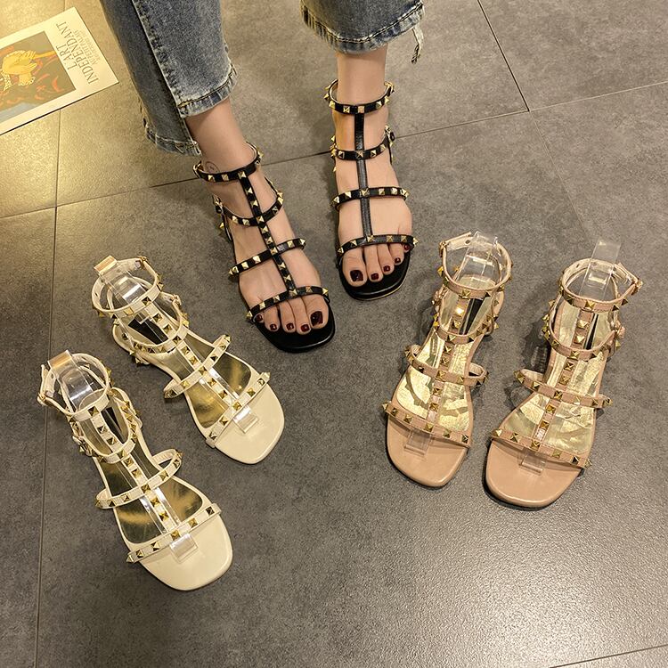 女性の靴2020夏の新しい女性のローマの靴野生の妖精スタイルストラップフラットボトムリベットオープントゥファッションサンダル 部族の婦人靴3143414