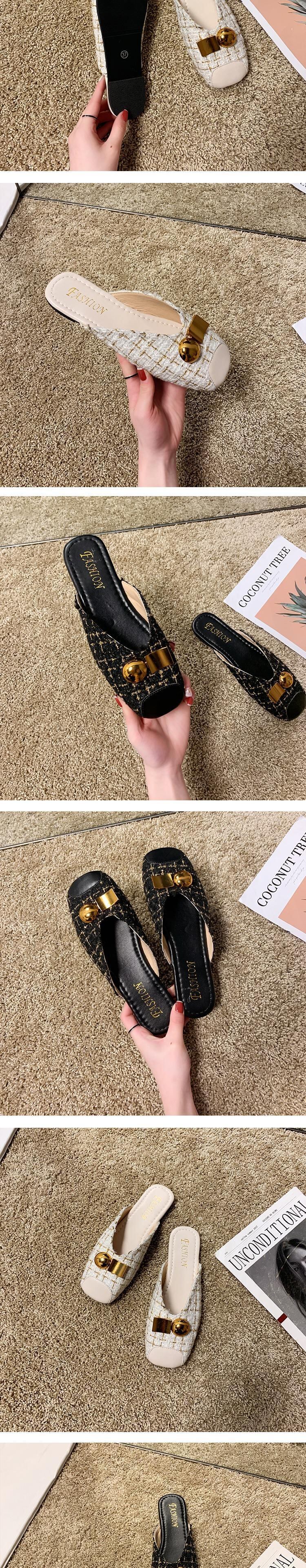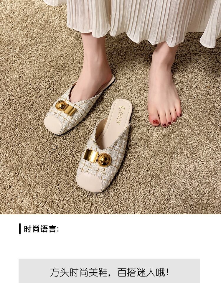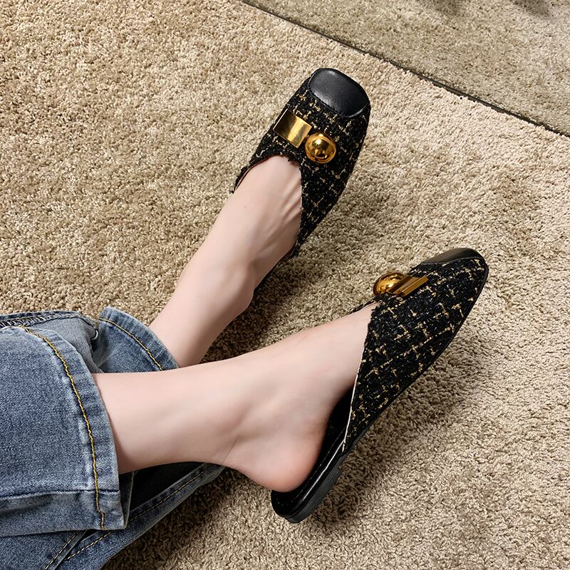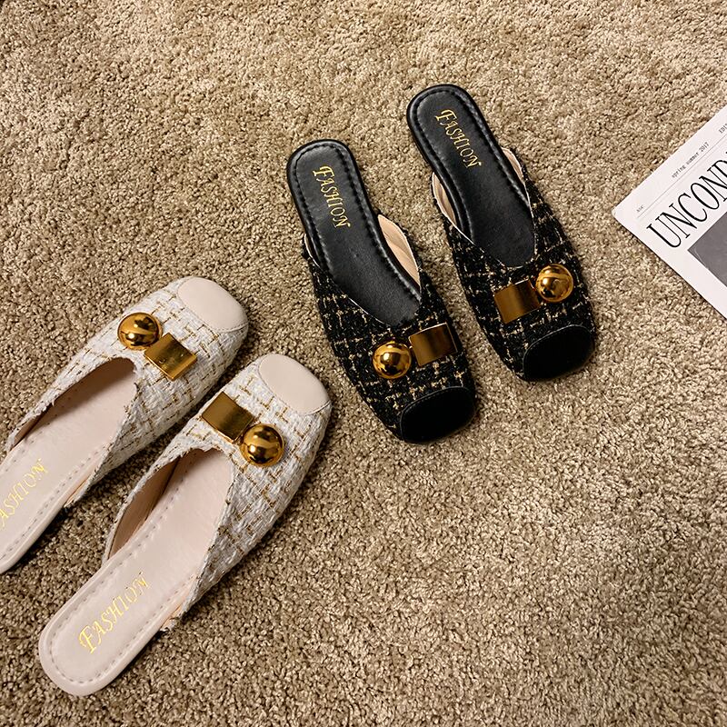 包頭スリッパ女性は2020年夏の新しい金属の正方形のヘッドネット赤い野生の小さな香りのスリッパ女性を着用します 部族の婦人靴4712285