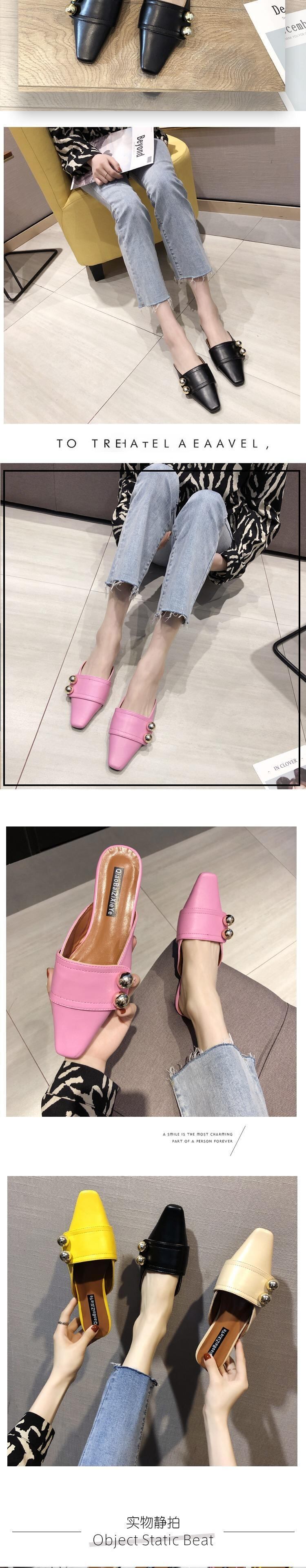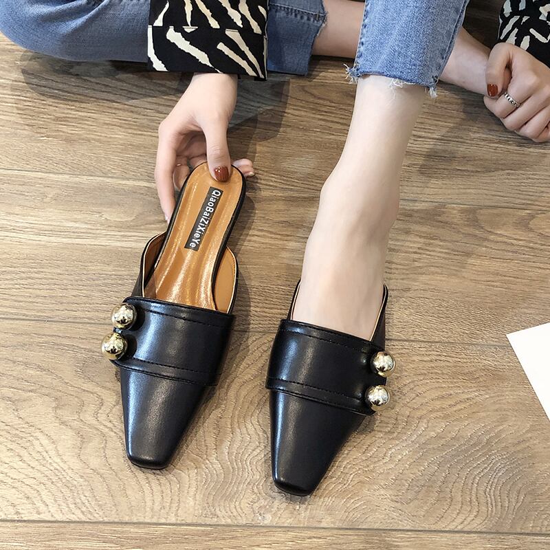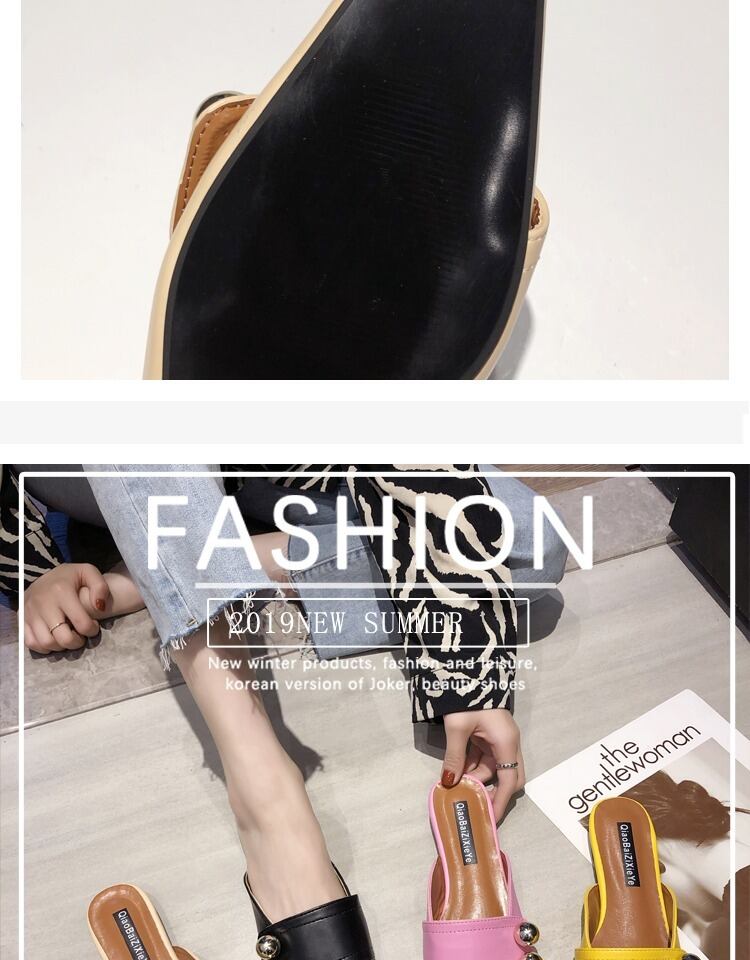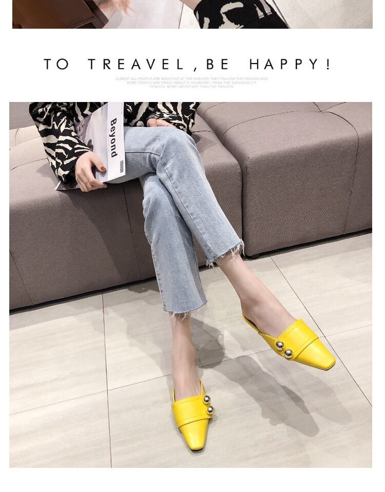 2020年春に新しい厚いヒール包頭ハーフスリッパ女性のファッション摩耗ネット赤ミュラー靴レトロ英国スタイルの正方形の頭 部族の婦人靴9613483