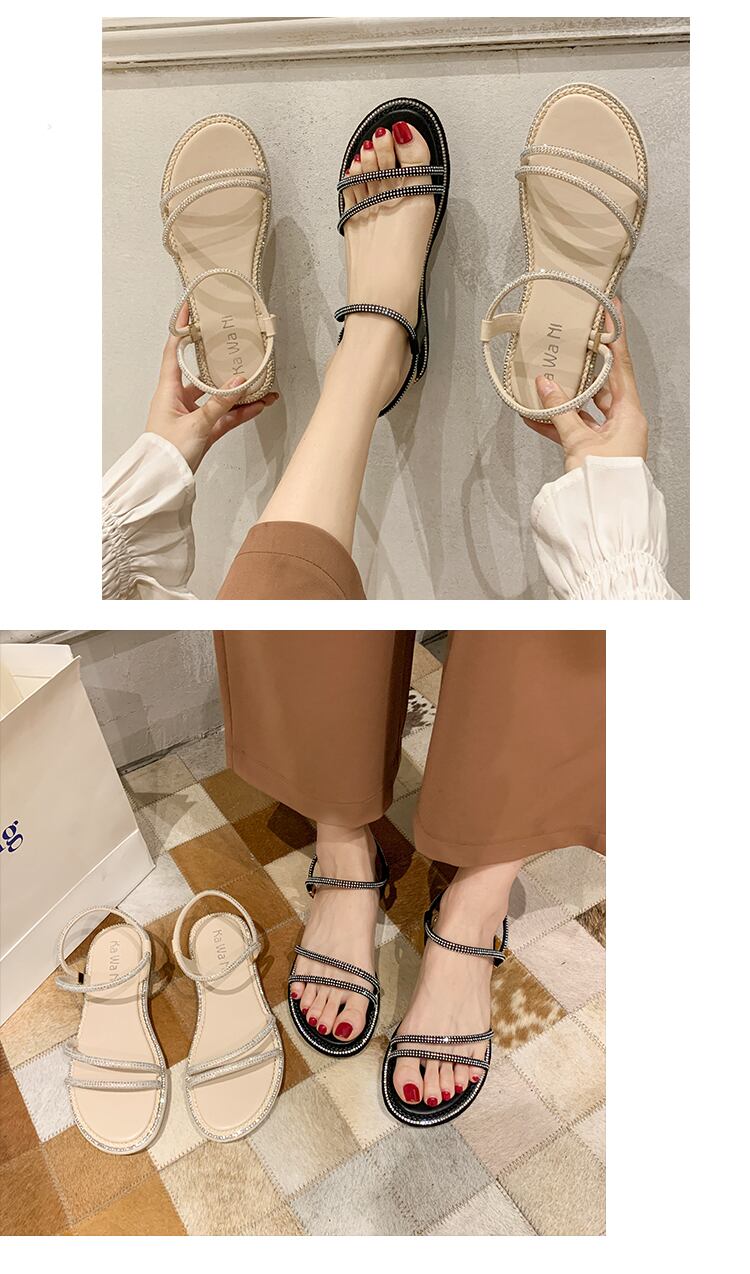 サンダルの女性の妖精風2020春の新しいinsバージョンのネット赤野生のラインストーンフラットボトムセットローマの靴の女性 部族の婦人靴7553452