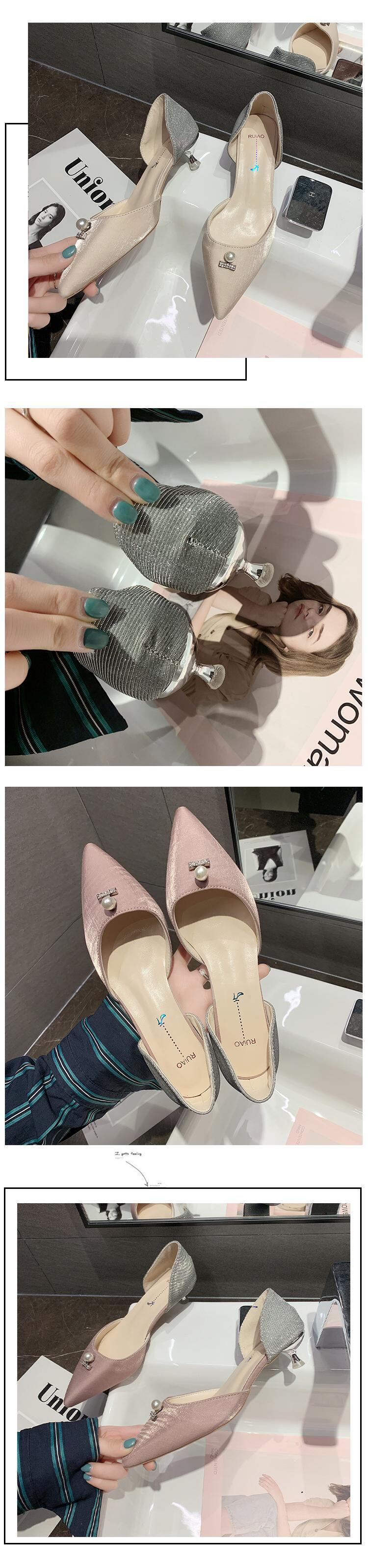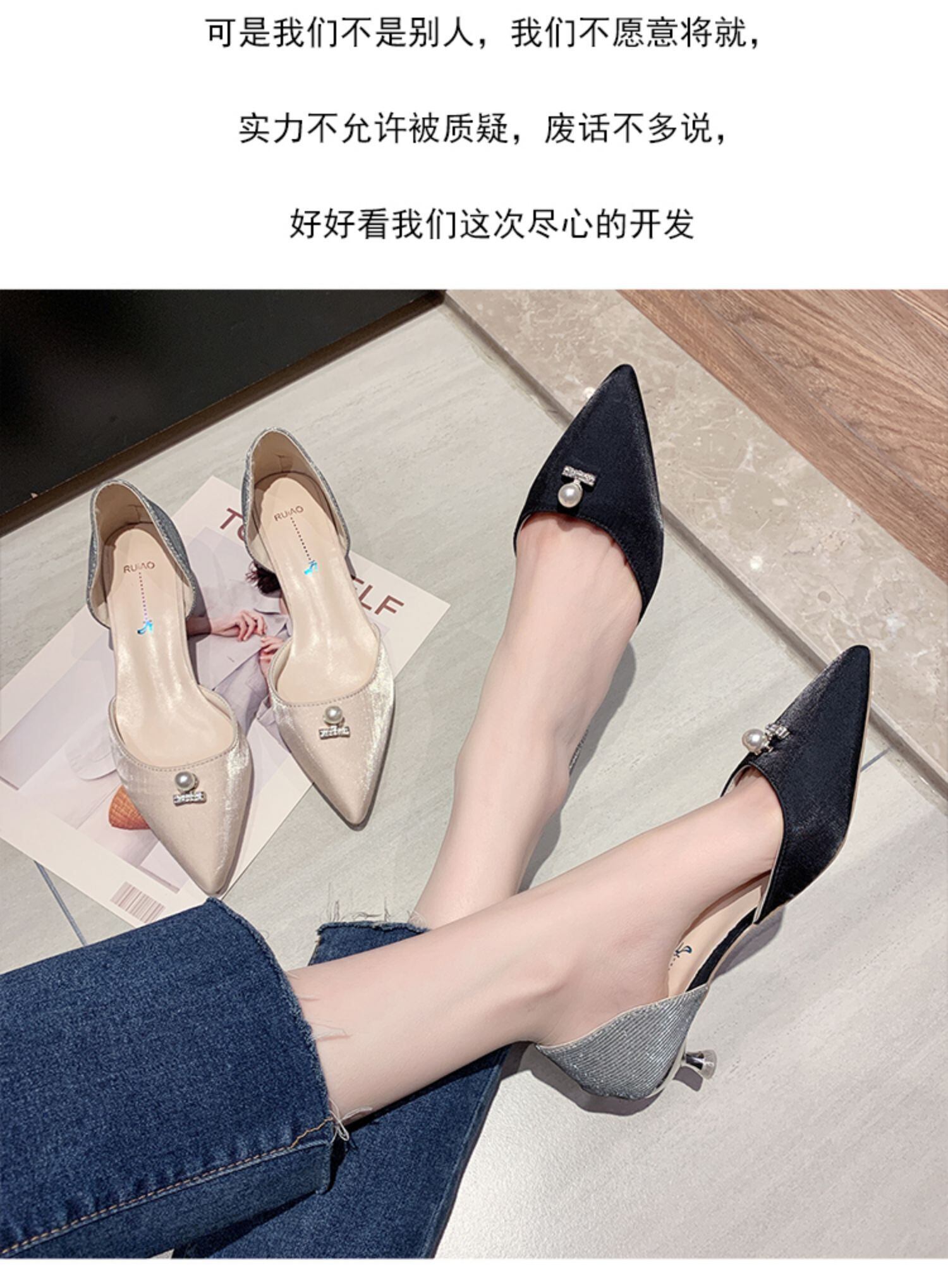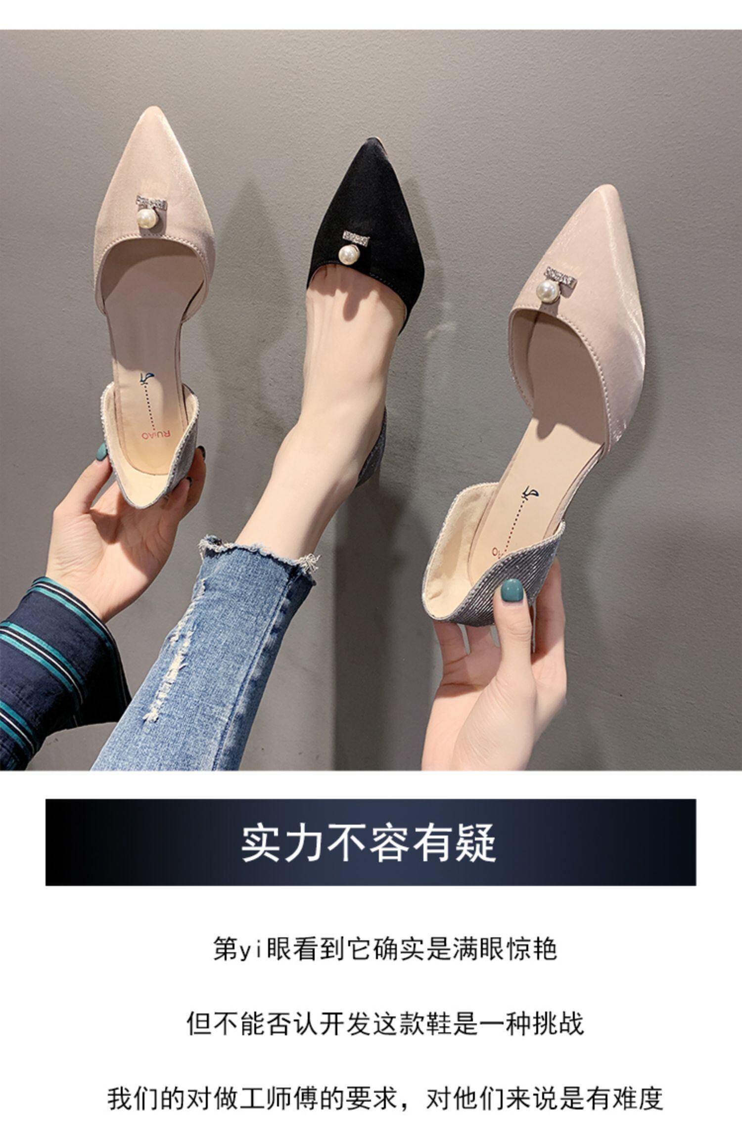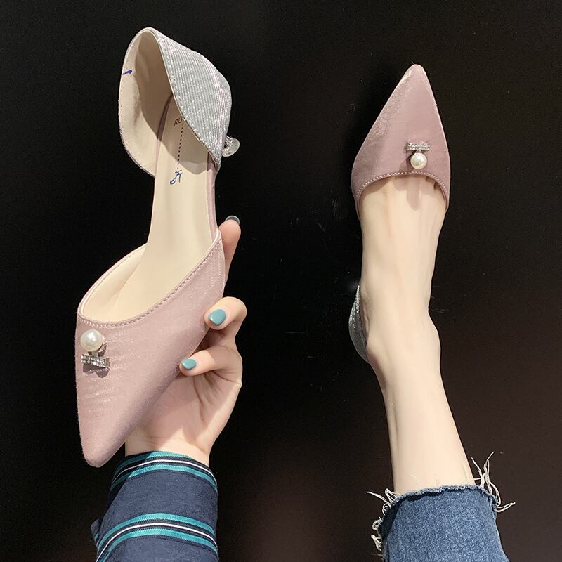 サンダル女性2020夏新しいinsファッションパールワイルドネットレッド細かい先のとがった浅い口ハイヒール 部族の婦人靴5730182