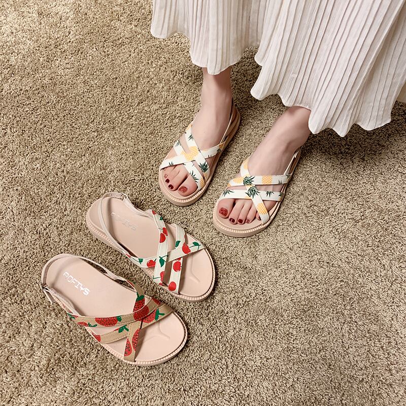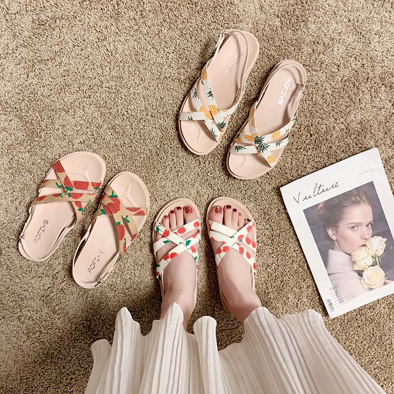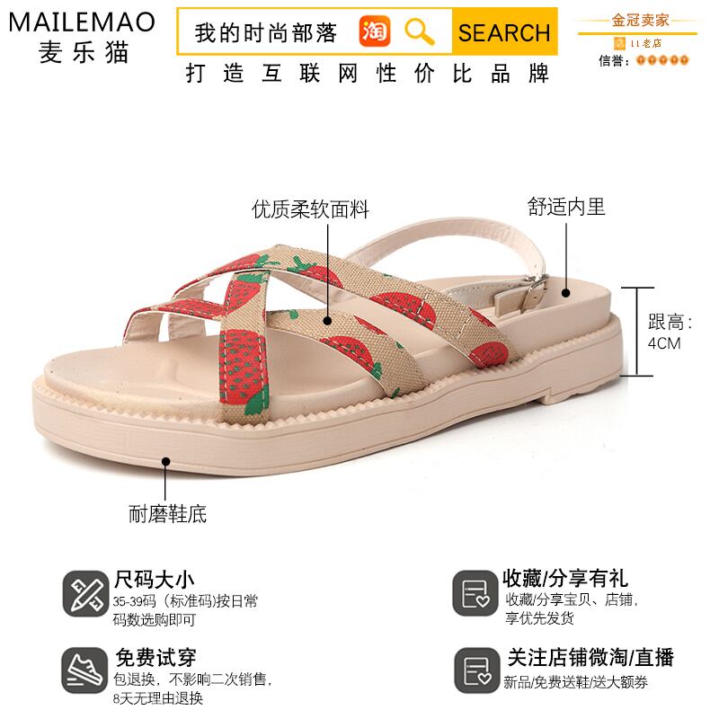 スリッパの女性は2020年春に新しいファッションワイルドネットレッドワードバックルビーチオープントゥカジュアルサンダルを着用 部族の婦人靴3905907