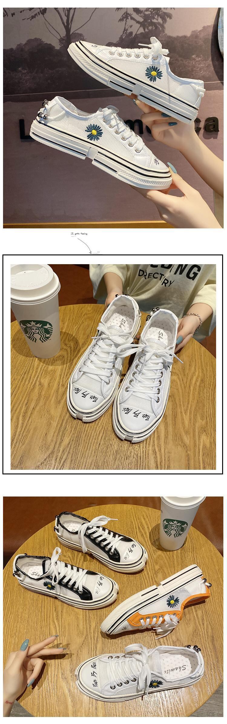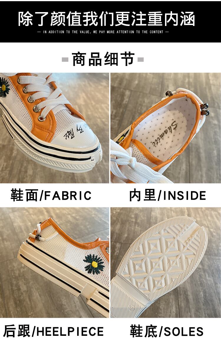 キャンバスシューズ新しい夏バージョンの純赤のレースアップの学生のフラットネットの表面の厚い底の小さな白い靴 部族の婦人靴5103413