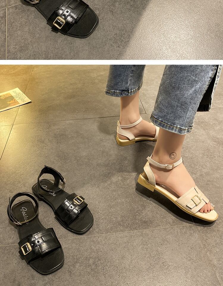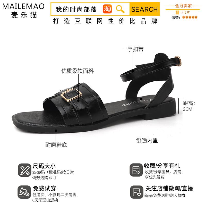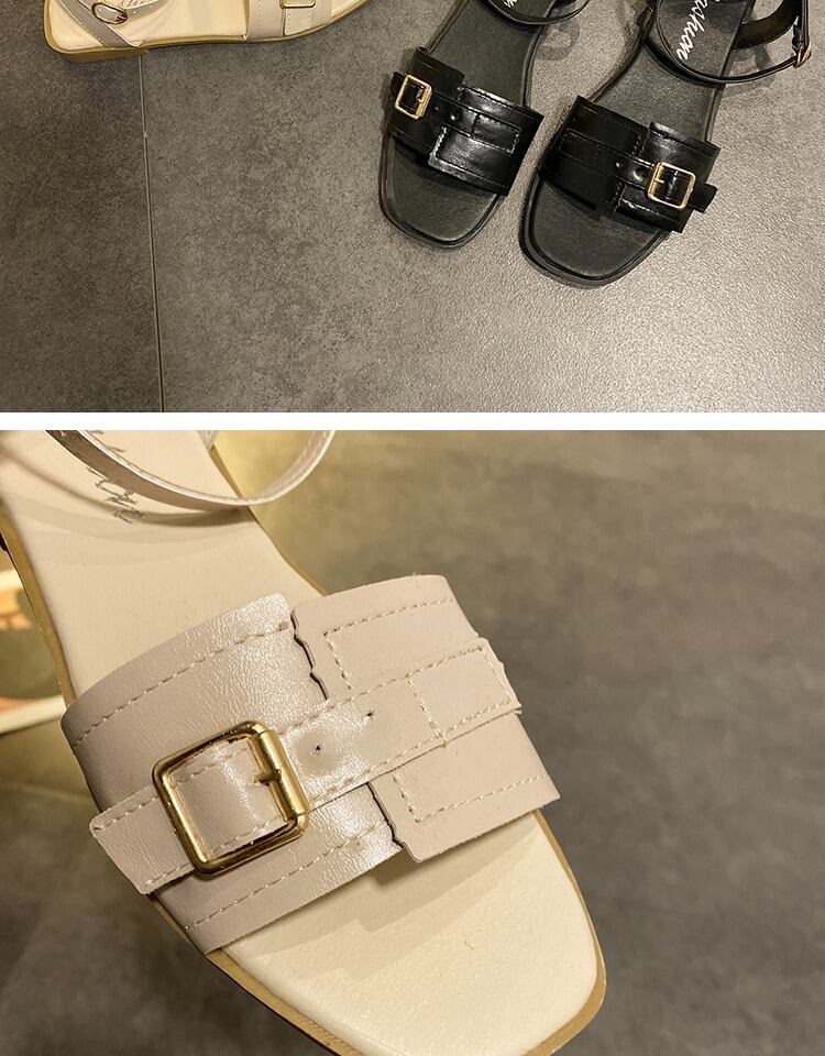 2020新しい夏の黒の春のファッションフレンチローヒールの靴厚いヒールの単語のバックルのローマのサンダルの女性 部族の婦人靴4014400