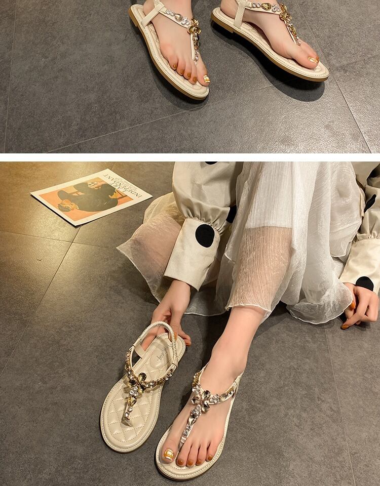 サンダルの女性の妖精風2020新しい春と夏のバージョンのネット赤い野生のラインストーンのファッションクリップつま先フラットボトムローマの靴の潮 部族の婦人靴3689248